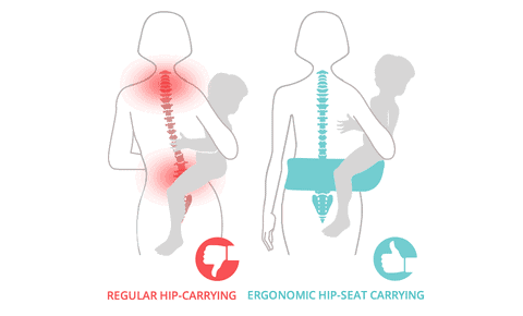 The ergonomic design distributes weight evenly throughout your lower back and prevents back pain. As a result, you carry your little one effortlessly and more comfortably at home, at work or while you travel.
