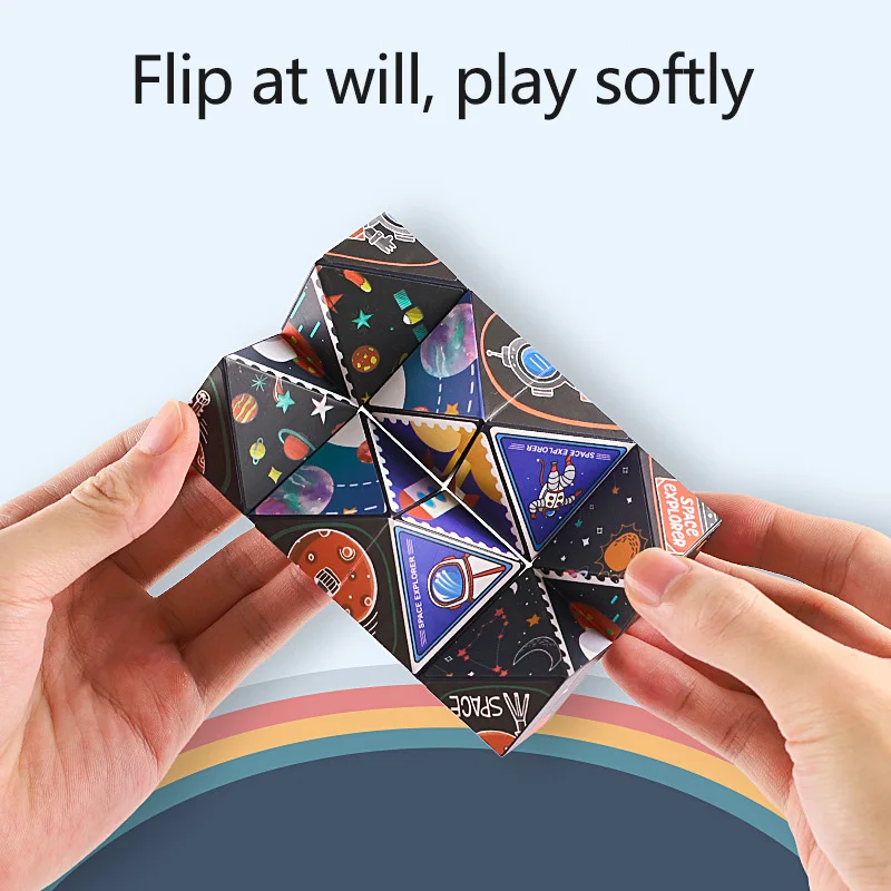 【INFINITE FLIPPING FUN】: Our kaleidoscope fidget toy is made of four hinged, plastic pyramids with psychedelic, tear-resistant stickers. Our manipulative toy infinitely rotates to show you a total of 4 unique colorful designs & is super easy to use! No noise, no gimmicks, just pure flipping fun!