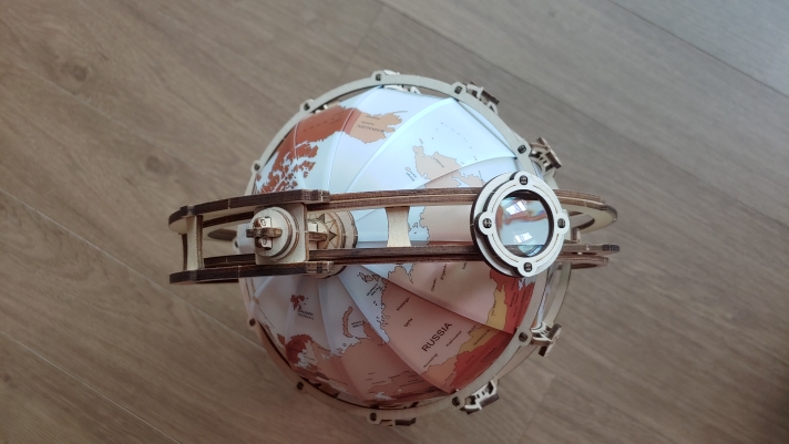 - NICELY DESIGNED STRUCTURES: The 25mm miniature magnifying glass allows for a better view of every detail on the globe’s map. The dimensional engraving in gothic letters gives the whole piece a vintage look. The wave wheel activation structure allows you to experience a better feel when turning the globe.