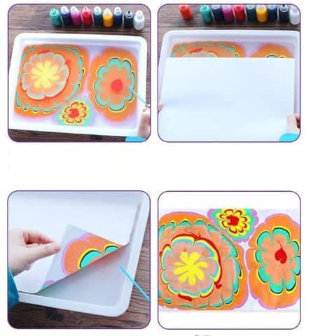 This art set creates dazzling prints on water unlike any other! Easily make exquisite marble-like patterns just by creatively swirling with a stick. It then easily transfer to ANY canvass of your choice to produce wall-worthy art!