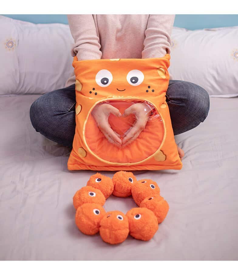 Are you a big fan of cheese puffs? Let me introduce to you our Cheesy puffs pillow. Parents and adults buy this adorable pillow not only for kids but for themselves as well. The pillow is very soft, and the surprising thing about it is that you can open the pillow to reveal “little cheese puff pillows” inside it. They are a perfect gift for brightening up a room and adding a little humor to your life. It is also very well made with adorable details like the ingredient list. You will love the cheese puffs of adorableness, and you won’t regret buying them. Get it now!