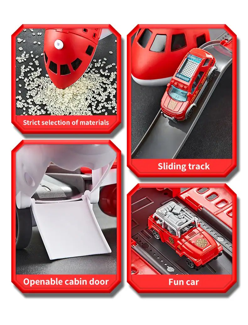 • 2-in-1 Design: Transforms from a jumbo airplane into a full vehicle play base with ramps, parking zones, and launch pads.