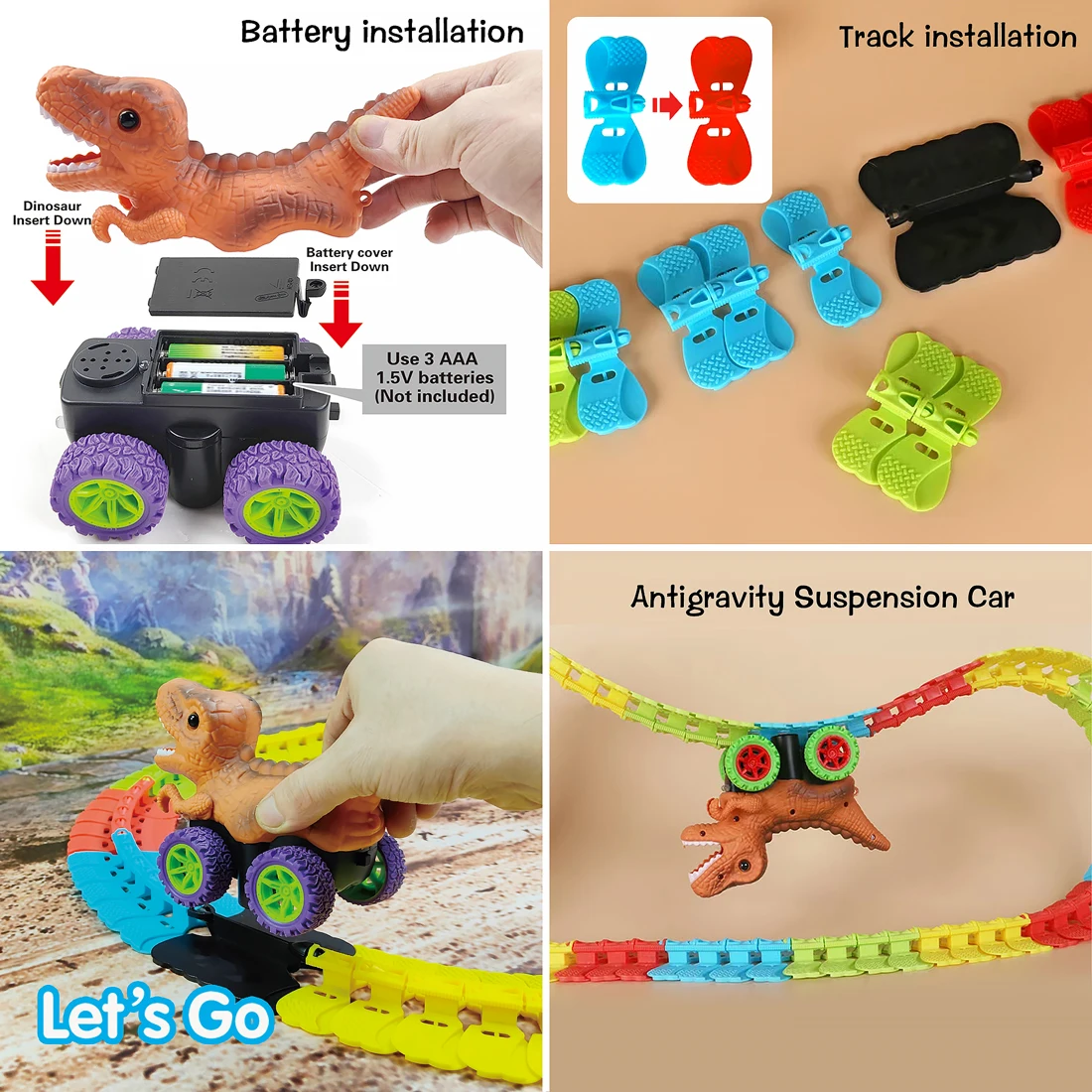 The Anti Gravity Dinosaur Car set is an incredibly imaginative and dynamic racing experience that combines the excitement of a traditional slot car track with the enchantment of prehistoric creatures. This set offers a unique and engaging playtime adventure for children and enthusiasts who love racing, dinosaurs, and creativity.
