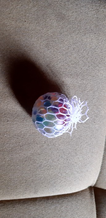 When the ball is squeezed, the balls peep out through the holes in the net, making it great for therapy and stress relief.