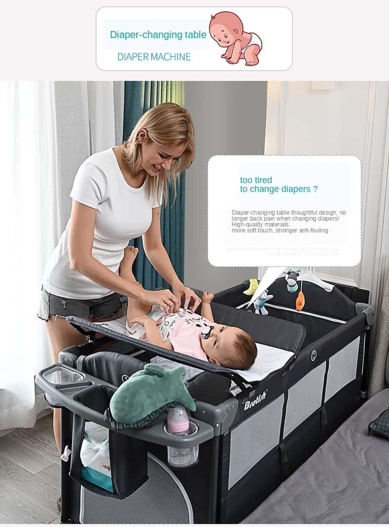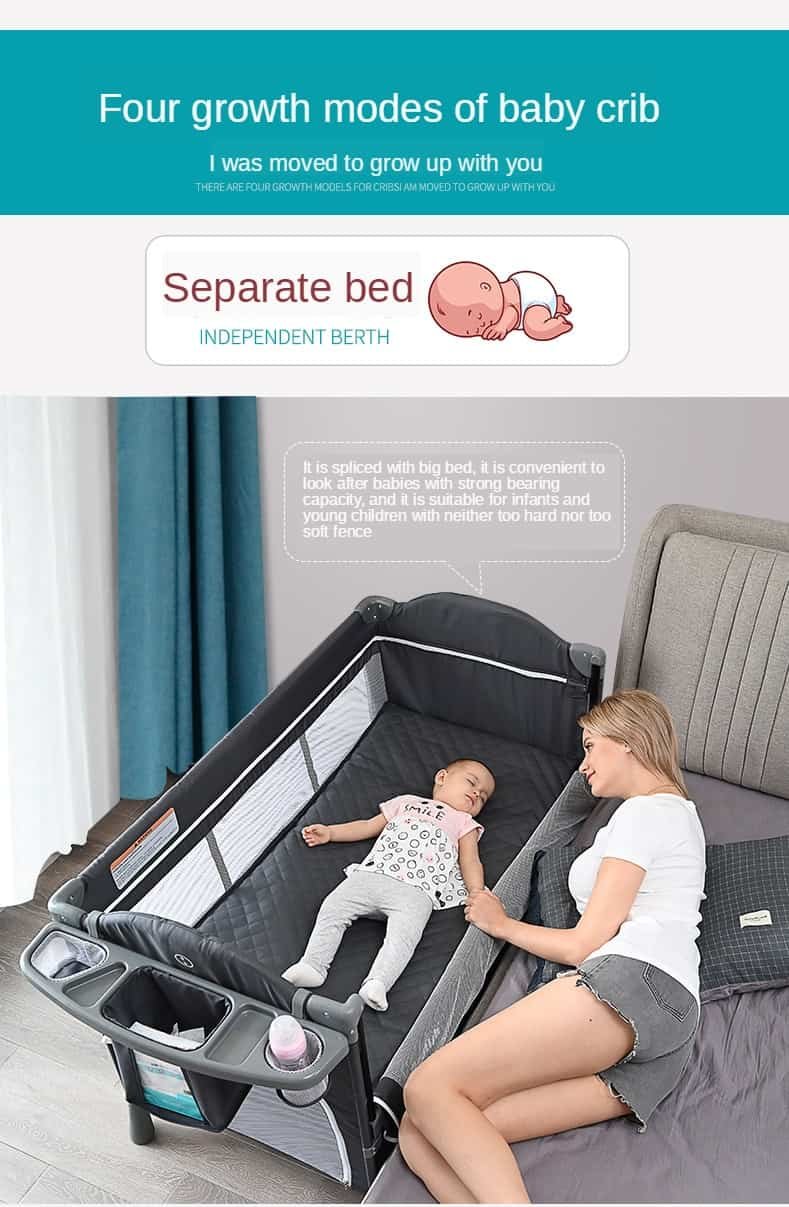 Our multifunctional baby cradle bed has several modes to use: baby bedside sleeper, travel crib, changing diaper table, the baby cradle for 0-3 years old, and playpen for 0-6 years old, which can accompany your kids’ growth.