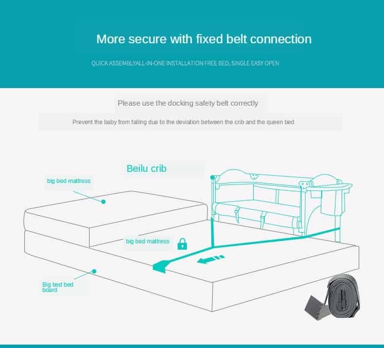 In just 4 simple steps, you can easily assemble the baby cradle without any tools. There are 5 height levels, and you can adjust the height to fit your bed.