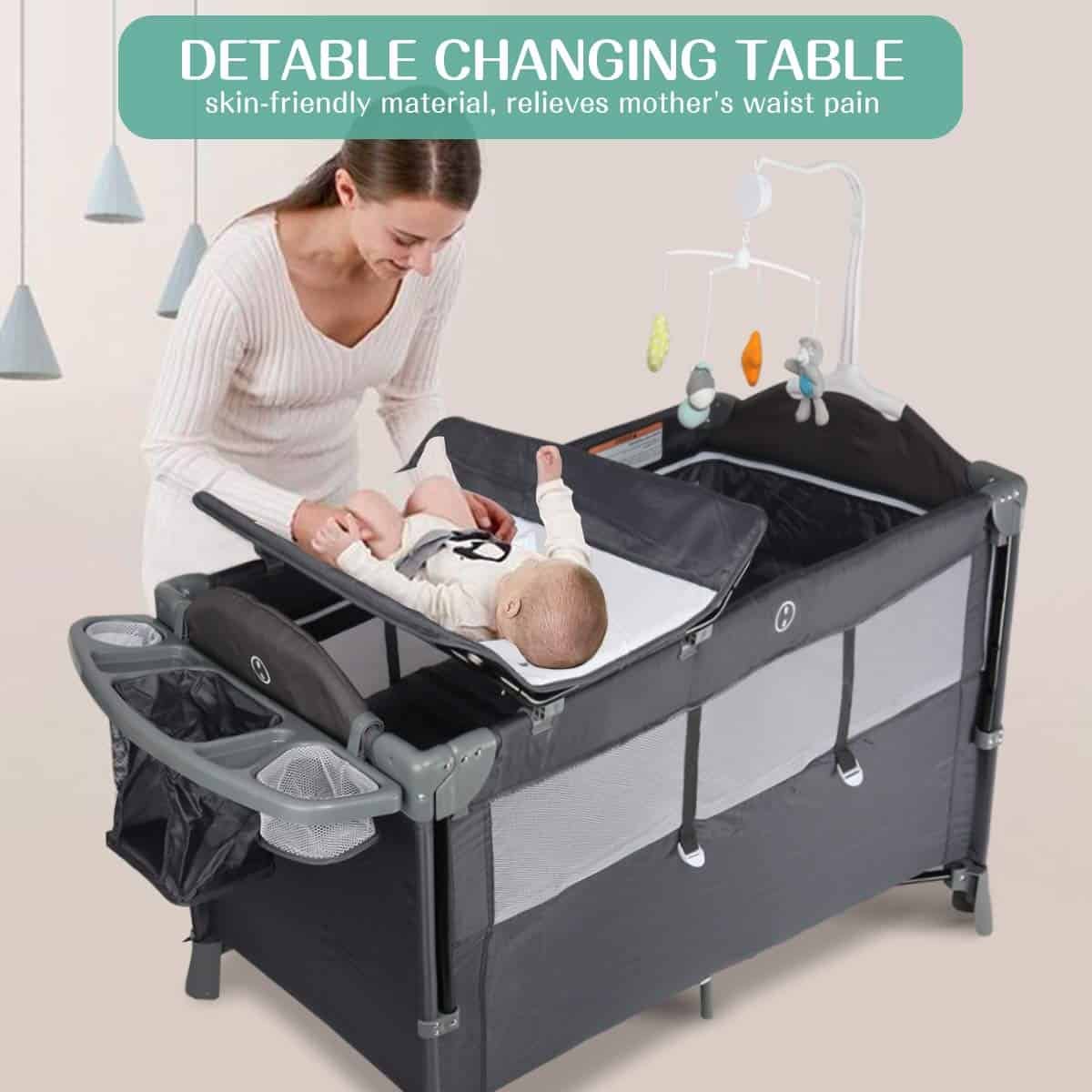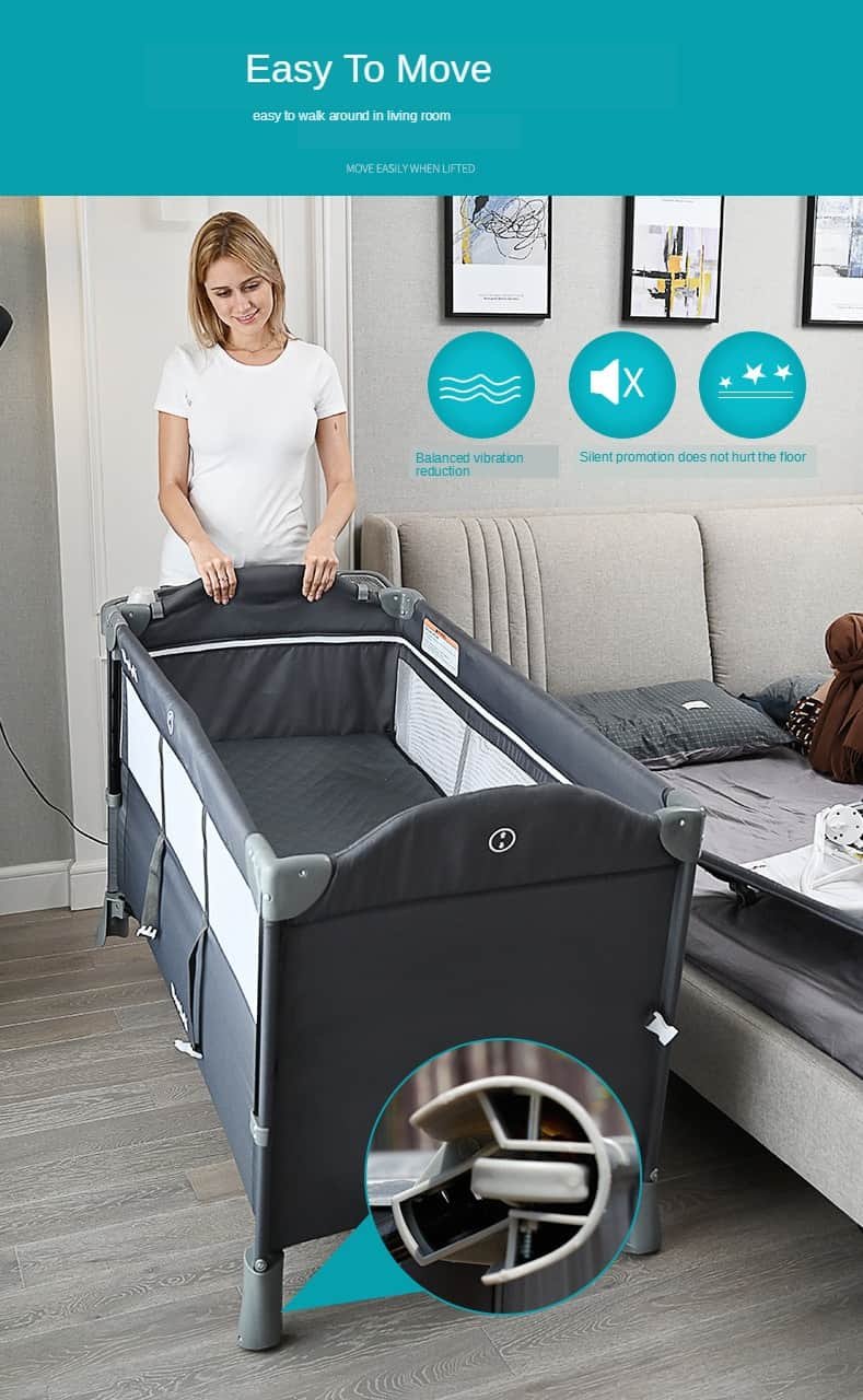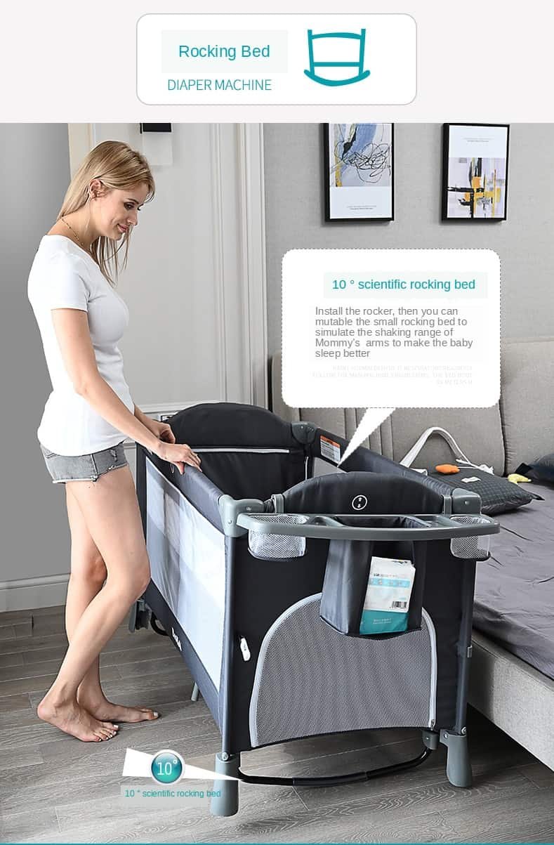 Hanging the movable arm of the plush toy on the side of the cradle bed can add fun to the child, make the child fall asleep faster, and help early visual development. Or turn on the play bed mode, the baby crib becomes a private playground, and babies will love it.