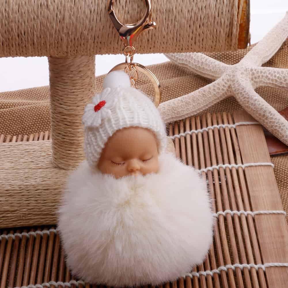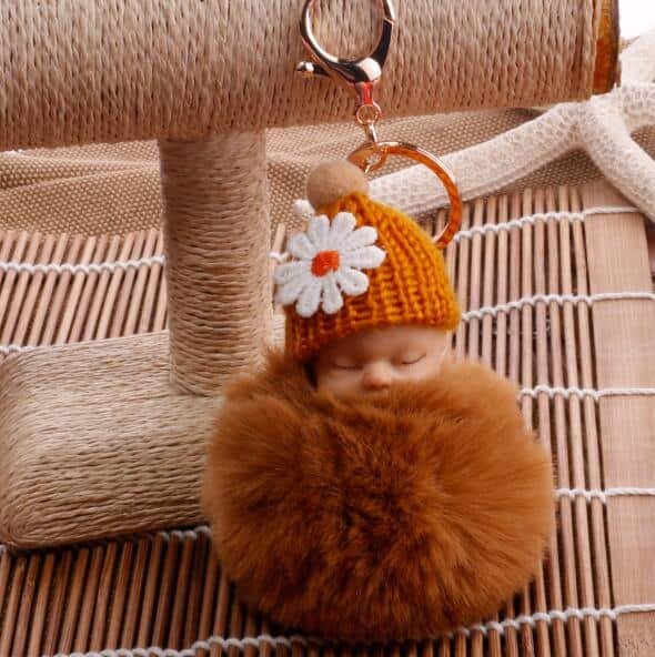 Are you a lover of the beauty of newborn babies? They are always a strong bond, a symbol of love between you and your partner. Now you can own one of these cute accessories related to babies with the baby doll keychain. This is a stylish and cute furry keychain, cute sleeping baby pattern looks quite lovely. It also has a fluffy ball which gives you a great soft hand feeling. Moreover, all the materials used in this product are all synthetic, not real fur and leather, so you don’t have to worry about the environment. The cute wool hat keychain is a great gift for many holidays, such as Christmas, New Year’s Eve, Birthdays, etc. It will be a firm commitment to friendship, love, and family. Buy now!