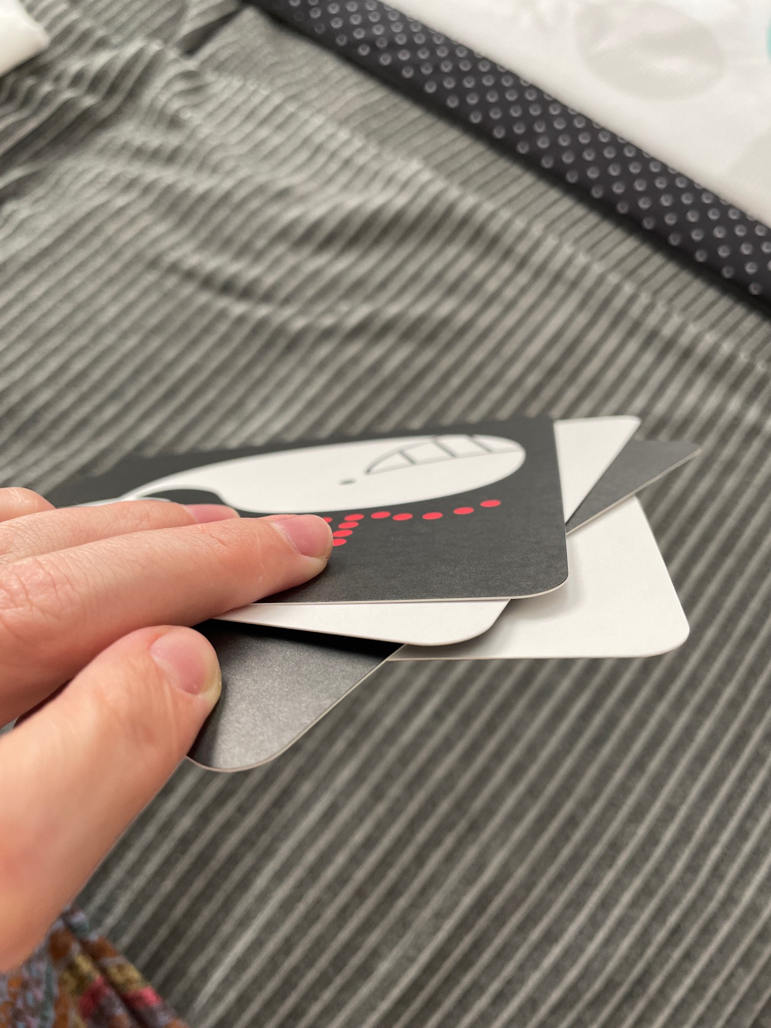– Communicate with them by holding the cards close to your face, and helping them track your face and hands as you move the cards.