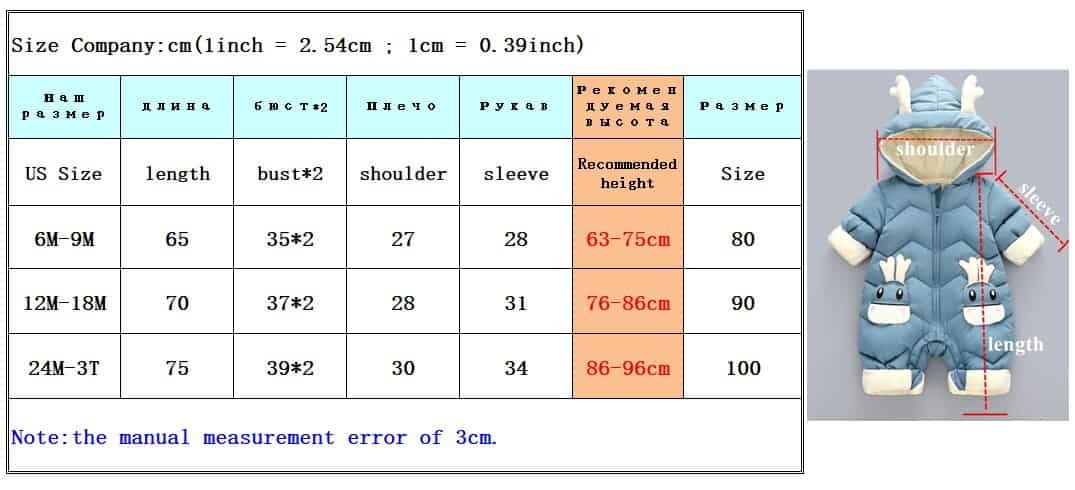 The jumpsuit came quickly, beautiful as in the picture. Warm, suitable for autumn and not cold winter, up to -5. At a height of 71 cm, took the size of 9M, with a reserve.