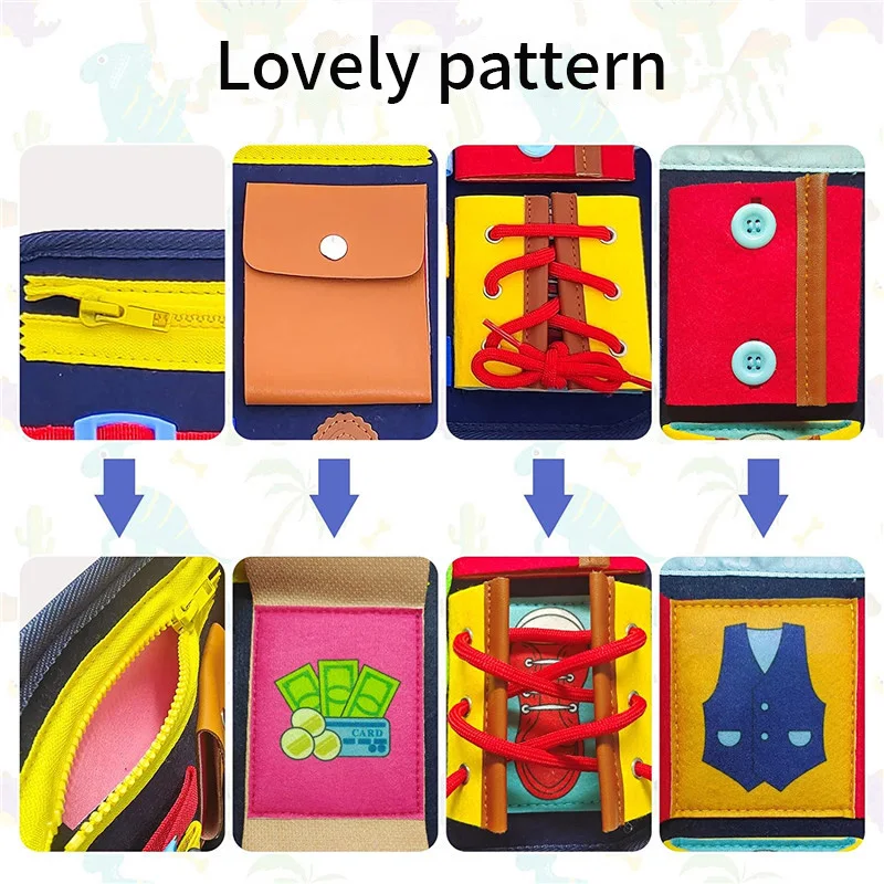 ✔︎ Multiple Activities: Features a variety of activities, including zippers, buttons, buckles, laces, and more, to stimulate curiosity and keep kids engaged.