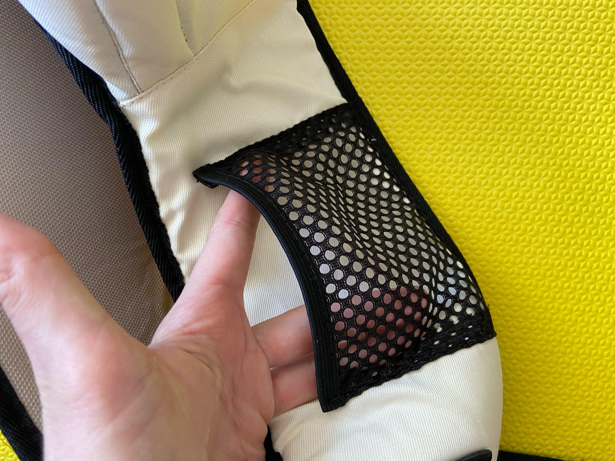 As described. A little uncomfortable to use, as with the child's weight, painful pressure is generated on the waist with seams and edges