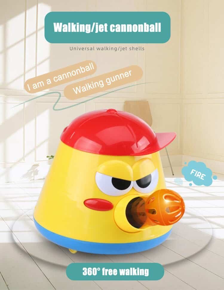 Open the cap of the cannon pot, put the bell ball in turn, activate the cannon pot, the cannon pot will spray the bell ball while walking.