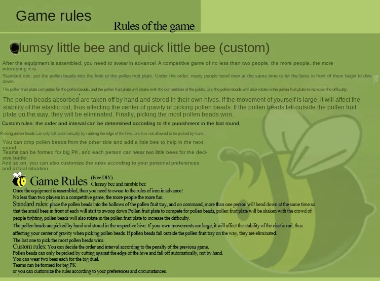 Four People Set: Scramble bee pairs; multiple small bees can only take pollen from one hole, the one who gets the most pollen wins!