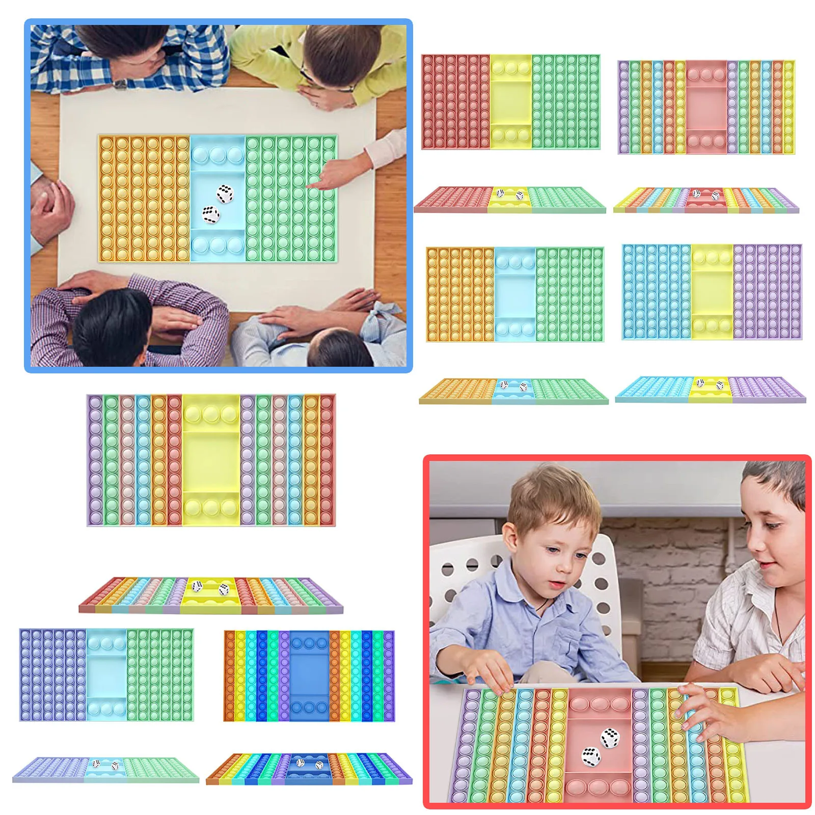 Are you looking for a toy to help reduce stress, combat anxiety, and focus on work? Introducing to you our Big pop rainbow chess board. Players take turns pressing down POP based on any number of dice the opponent throws, and whoever pushes the last one will lose. Made of high-quality silicone material, this bubble sensory toy is an excellent gift for people with autism and stress to help them relieve stress. By squeezing our silicone bubble board, you can get mental comfort and emotional release. It is lightweight and easy to carry, you can simply fold it and put it into your bag. Suitable for playing in cars, buses or airplanes, restaurants or schools. It is also waterproof and washable, so you can play it anywhere even in the bath! Get it now!