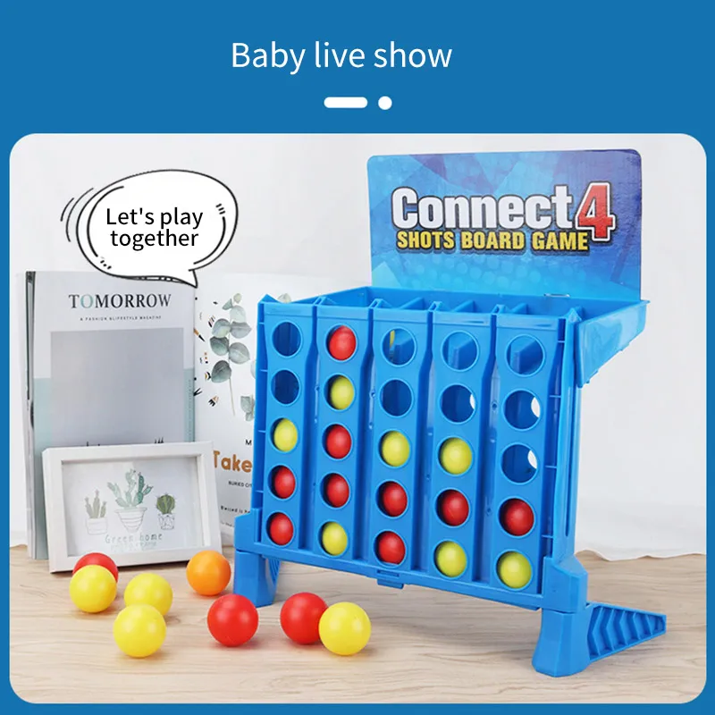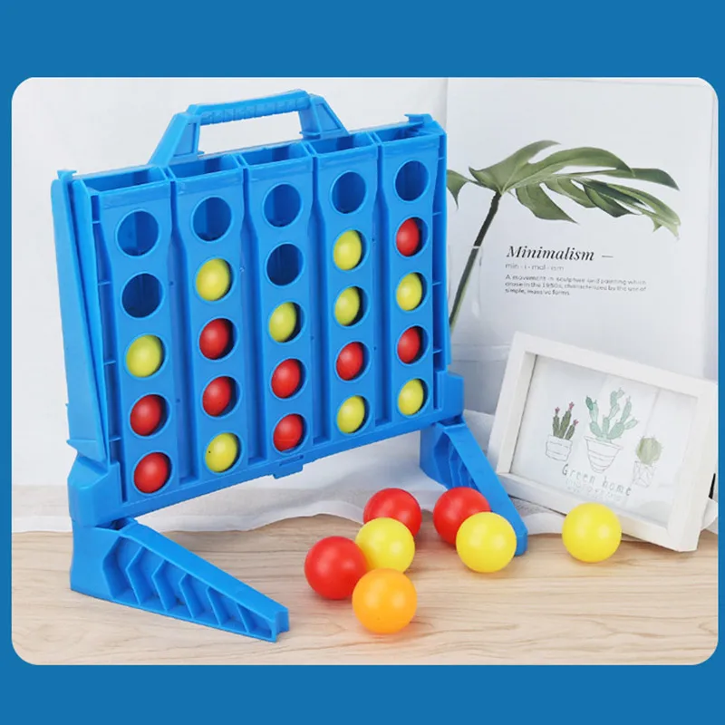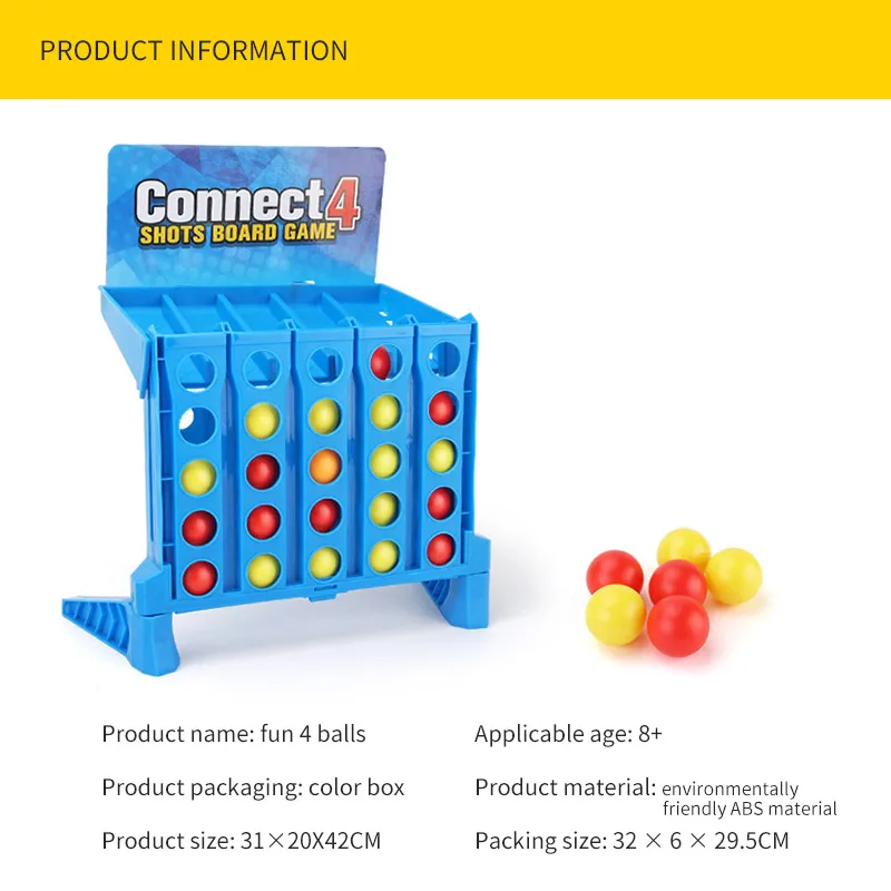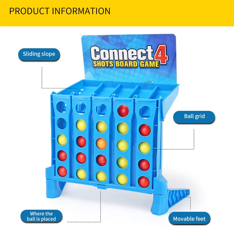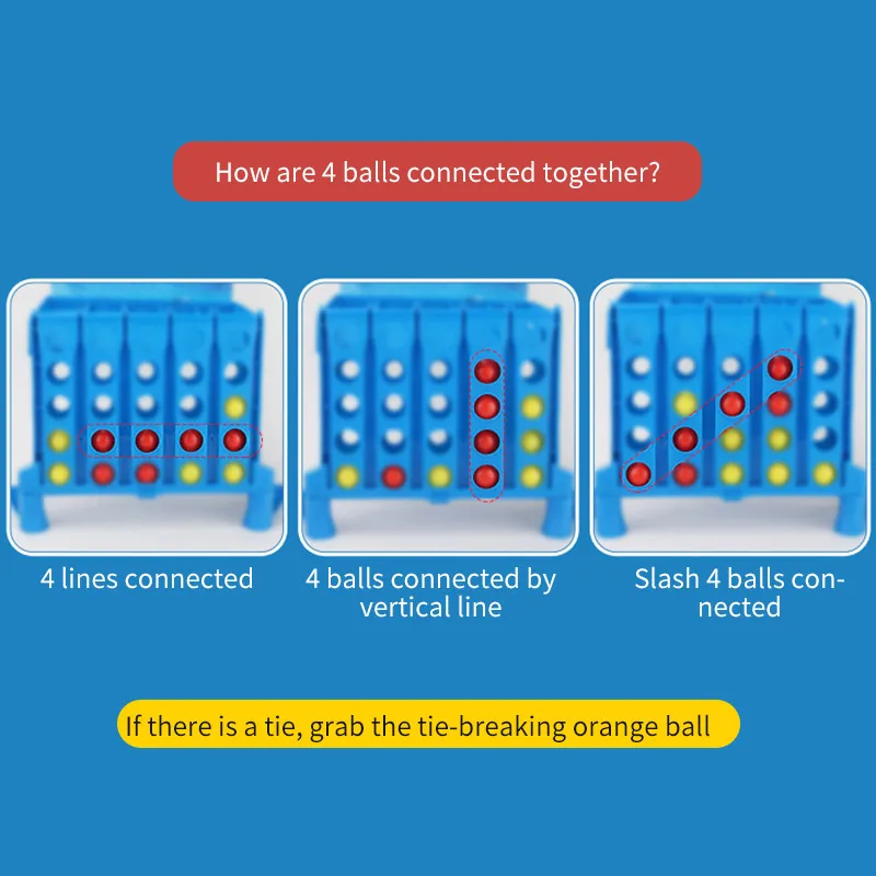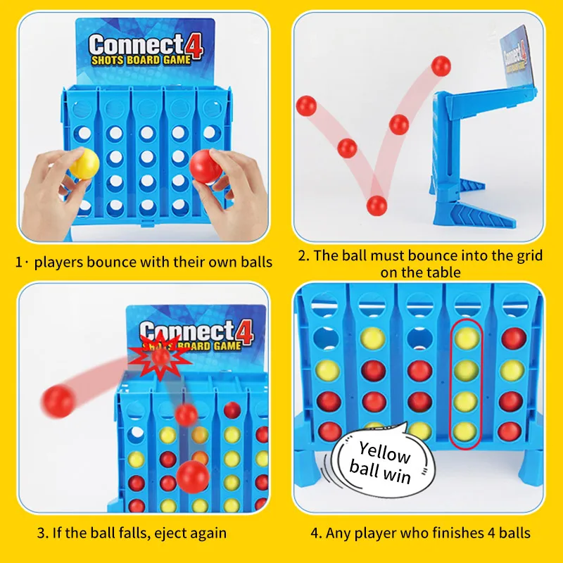 The Bouncing Linking Shots game needs the winner got a same color ball line on the toy ball grid. Two players, each has one color ball. Players try to throw the ball on the desk and let it be reflected into the sliding slope. At last the ball roll into the grid. Each player takes turns throwing the ball.