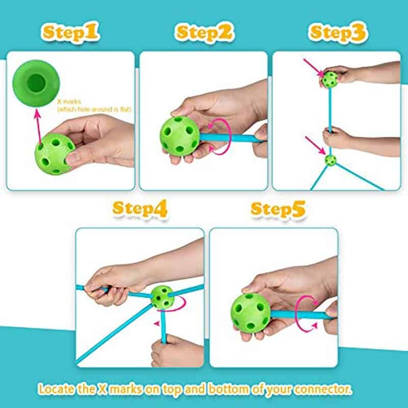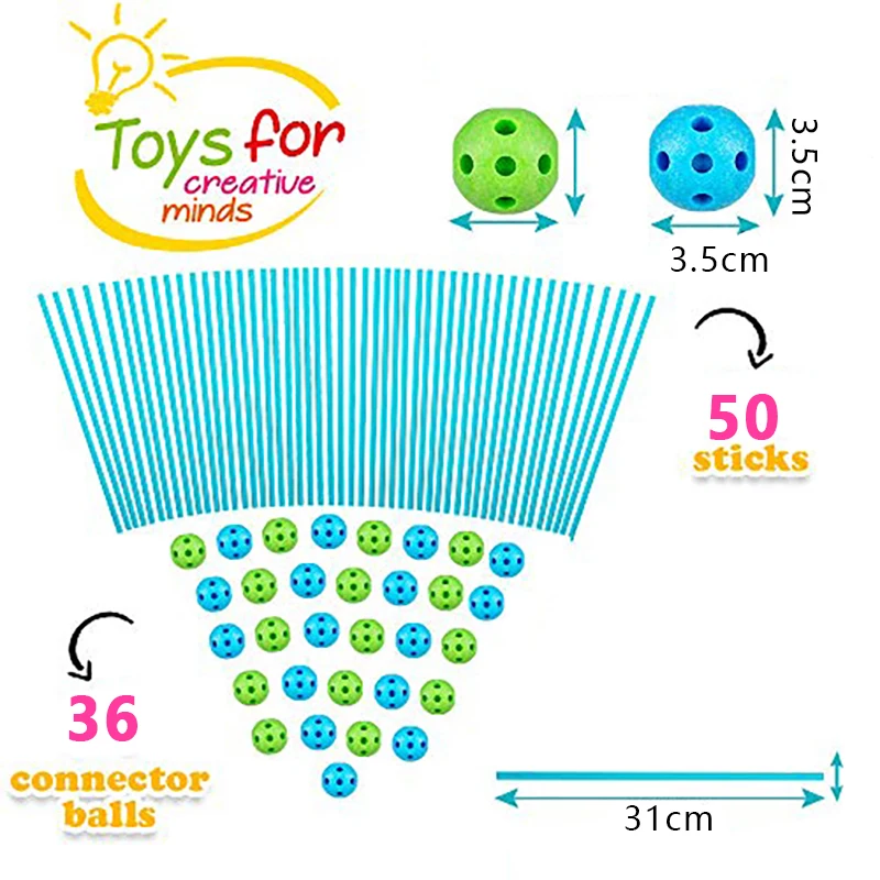 Nice toy for kids. But the manual say that the sticks pass trough the balls, and that is not possible. I will cut some sticks im half to improve the options of construction. The amount of balls and sticks are correct.