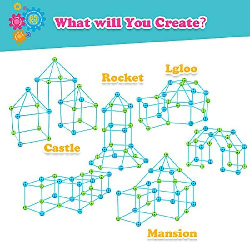 Flexible stem fun for boys and girls: Our kid’s ultimate fortress builder kit is designed for kids aged 5 and above, they can build a cave, play with tents, rockets, houses, igloos, princesses Castles, tunnels, tents, toy tents, pirate ships, just add sheets to create hidden places.