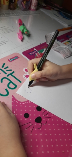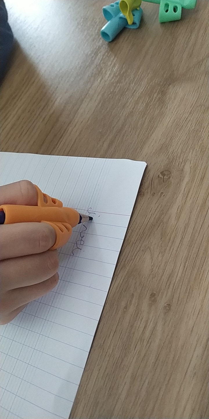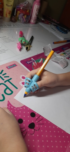 Excellent product made of silicone for fingers, suitable for any stationery, except thick markers. Several sessions of writing with such an assistant-and the child himself folds his fingers correctly. Recommend to buy