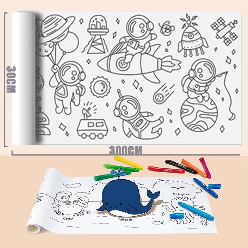 [Continuous Coloring] This mess-free coloring roll works well with almost all coloring art supplies like crayons, colored pencils, gel pens and most markers. Good performance in both indoor and outdoor.