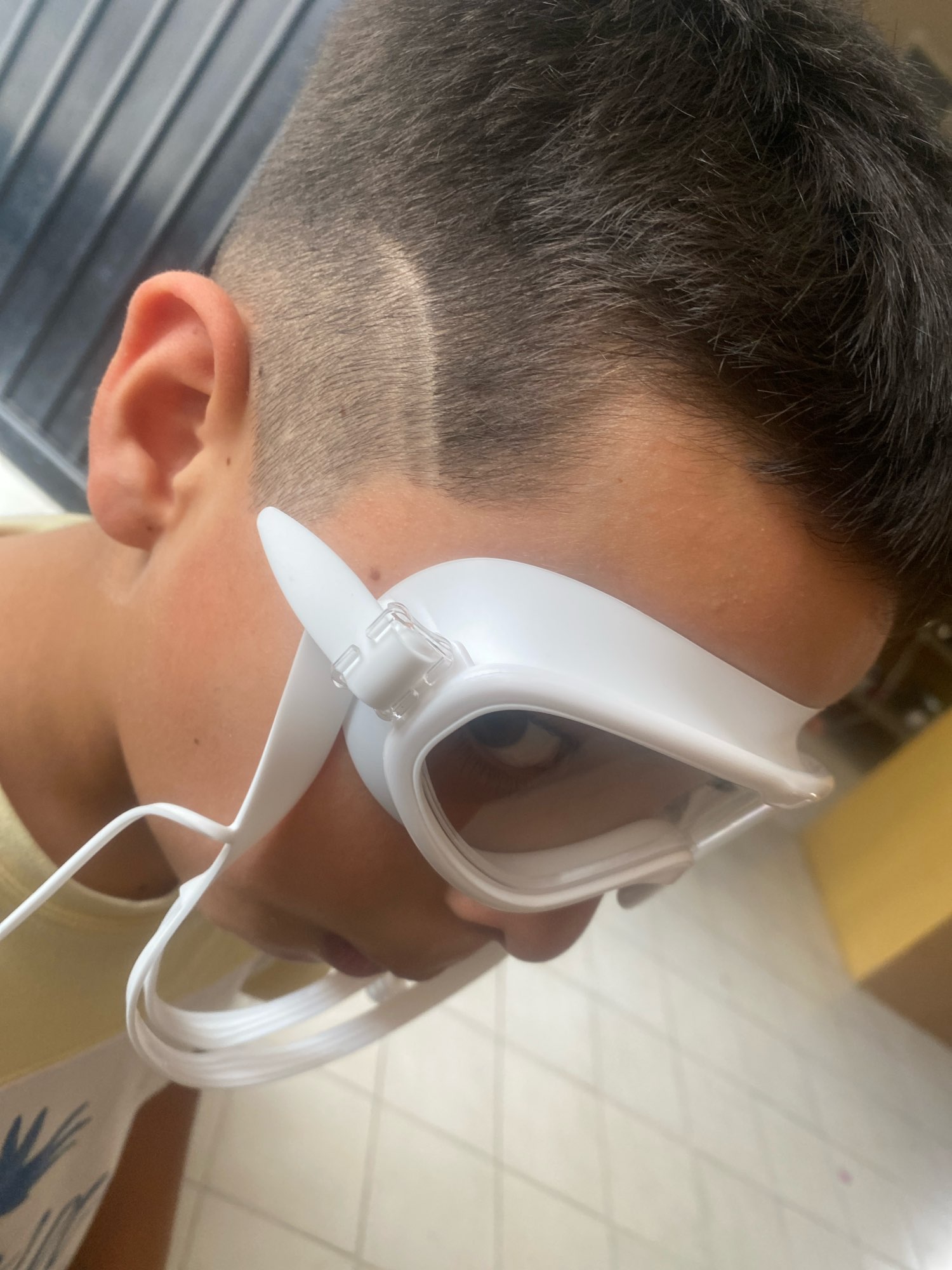 Delivery 11 days. The product packaging is not very good. It could have been put in a bubble wrap. Fortunately, the product arrived without damage. For a 9-year-old child, the glasses turned out to be a bit too big. Doesn't fit tightly near the temples, elastic tightening doesn't help. I tried it on myself - it fit perfectly. Conclusion - only suitable for larger children with a head circumference of more than 53cm.