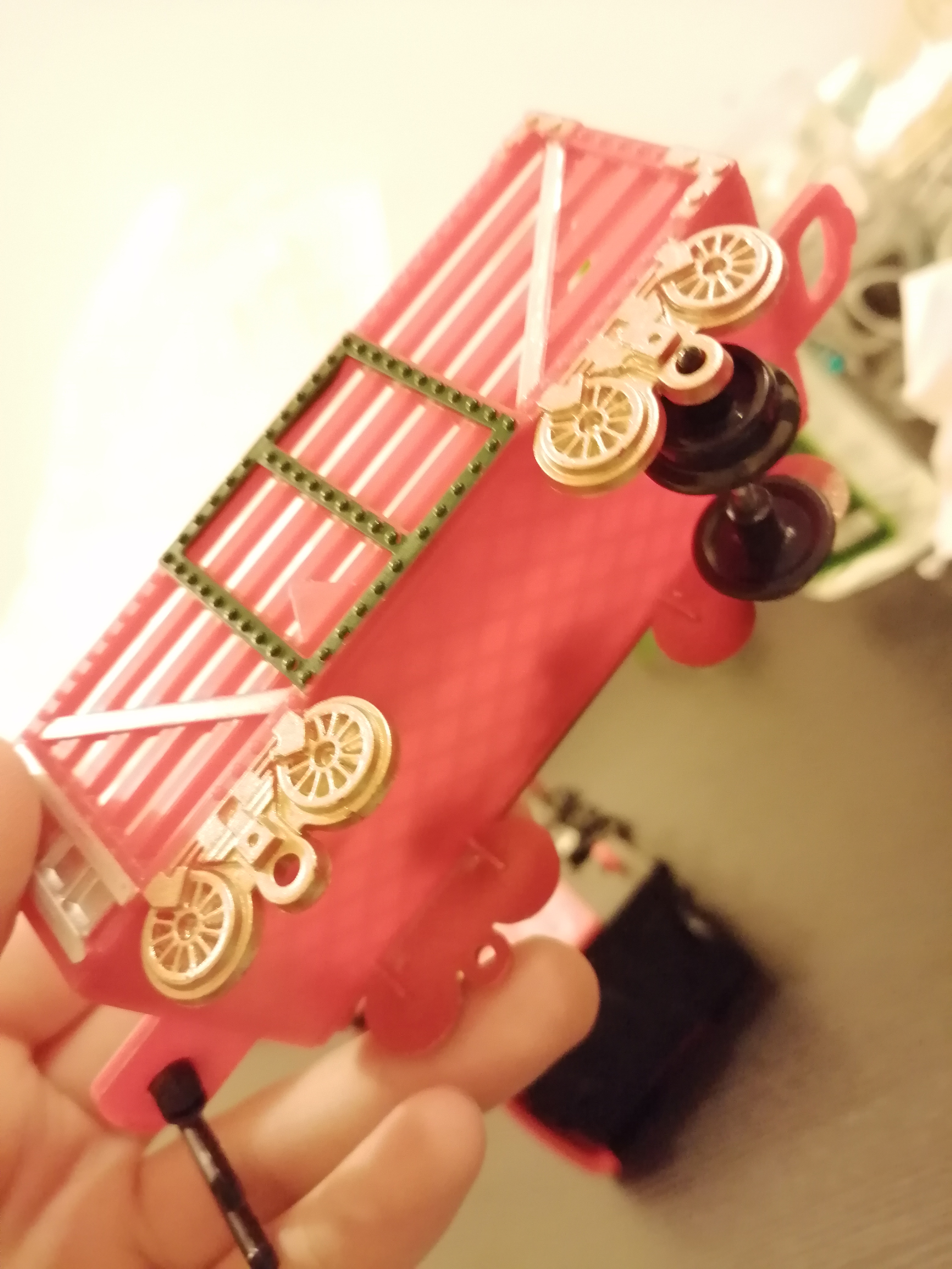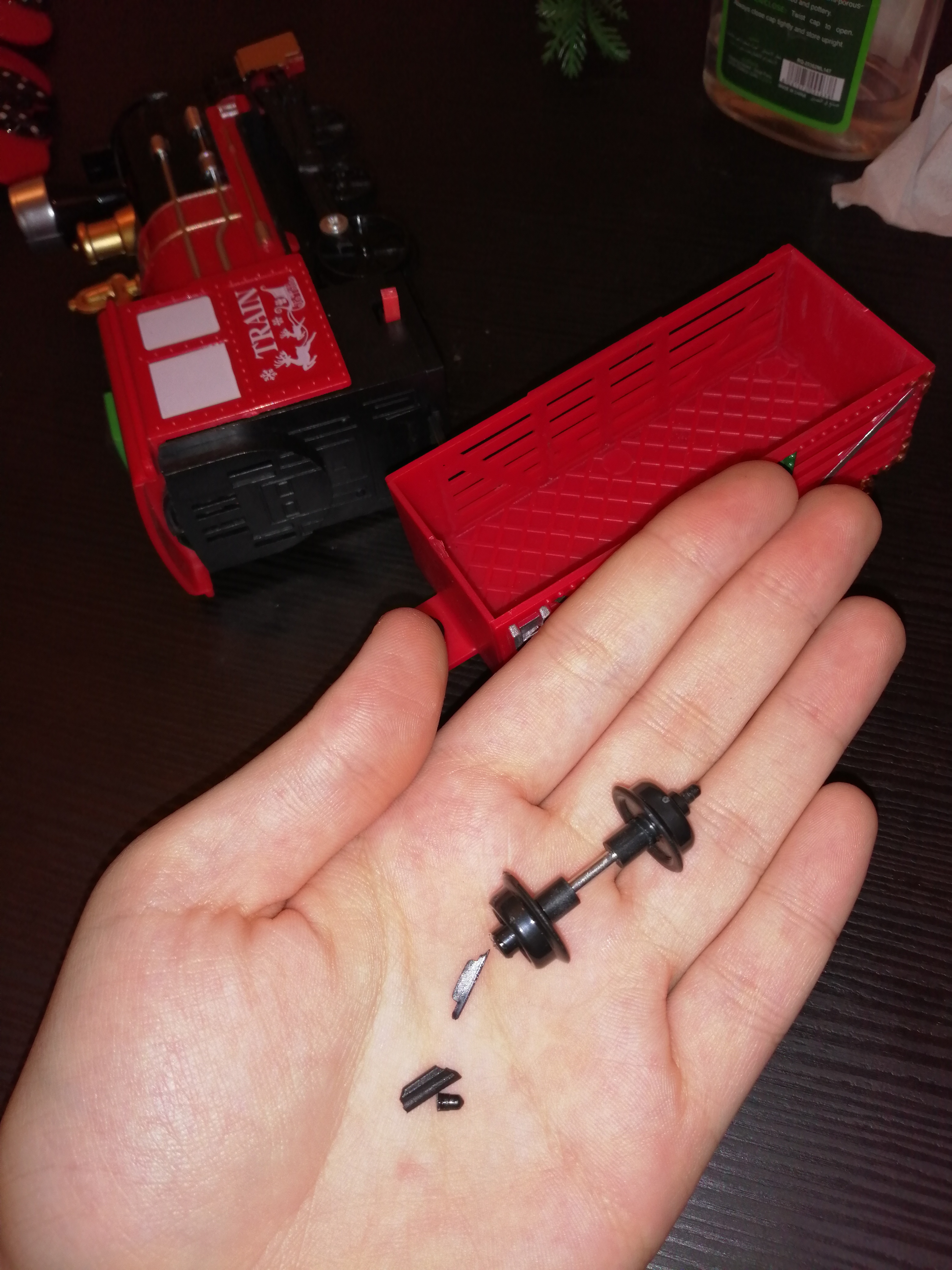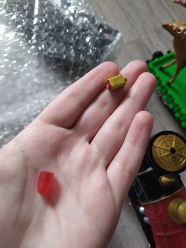 I didn't expect it to be such a beautiful toy. Nothing broke along the way, but if you order as a gift, it will be inconvenient. Works from 4 batteries AA (not included), goes pretty quickly, even smoke from the pipe goes (did not notice this in the description of the product).