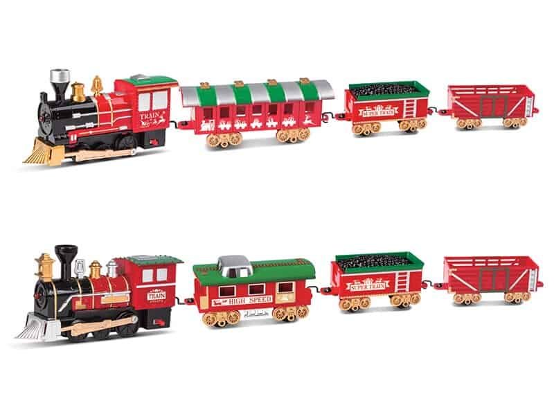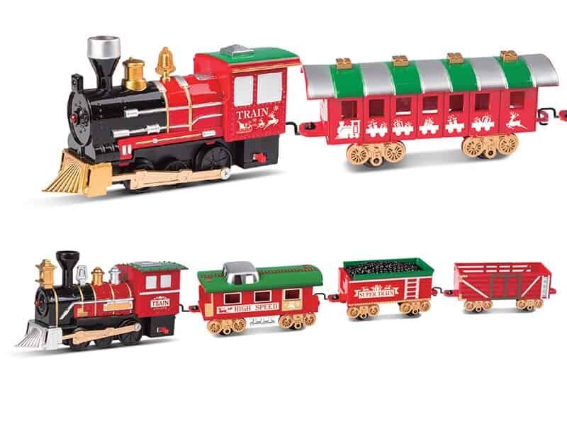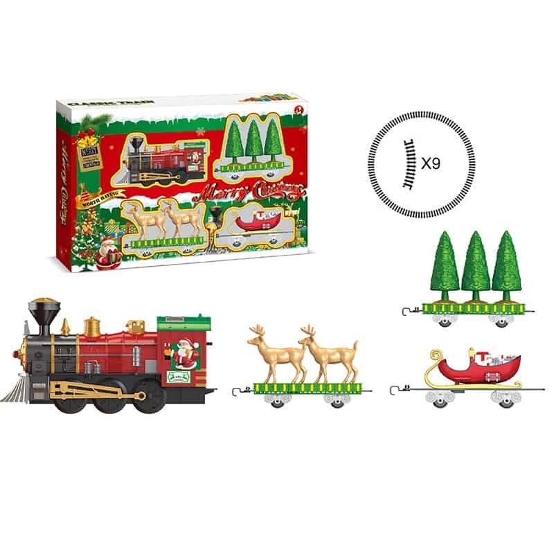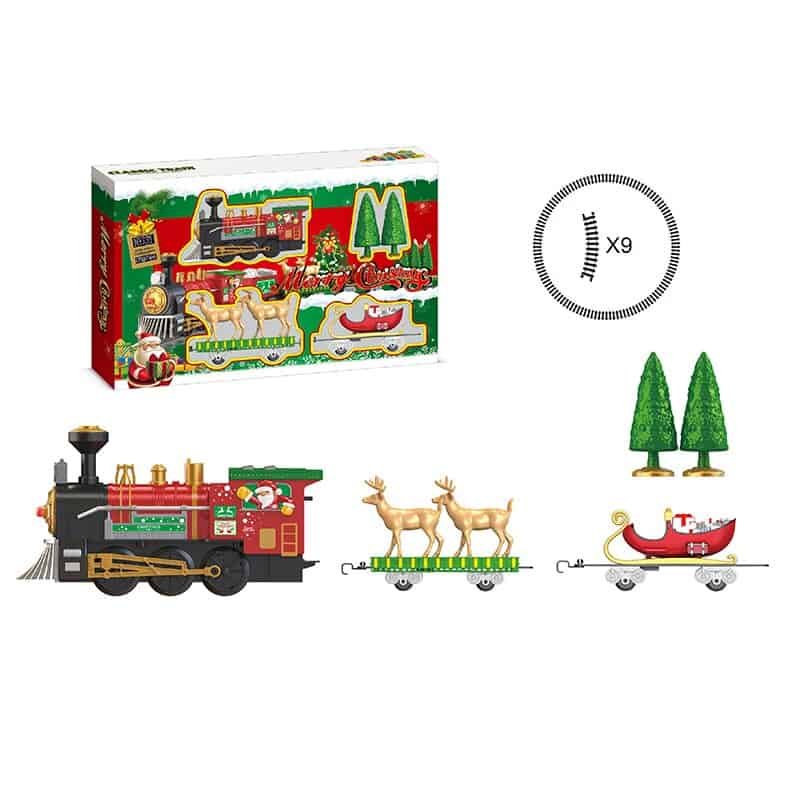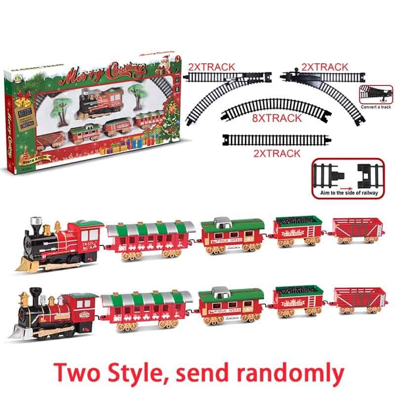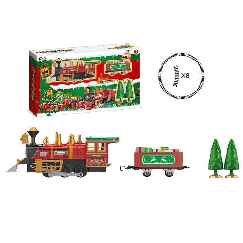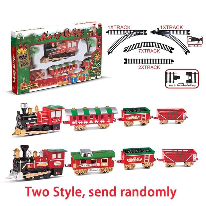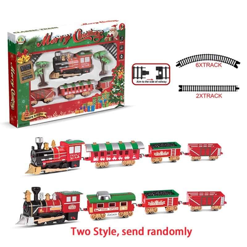 Impeccable Christmas train set comes with 4 train cars and tracks and is conveniently powered by 4 x aa batteries. Santa Claus, a train of Xmas gifts, authentic train sounds, working headlight, bring a press of seasonal animation to your room this Christmas with the stunning classic train set. Set up the track around the base of Christmas tree, and watch as the train chug around to greet your family with a choo of Christmas cheer! Wonderful Christmas toys realistic sound and lighting make this Christmas train extraordinary at all times. Moderate size is fit for most family Christmas trees. Around your Christmas tree, it will be the most eye-catching Christmas decorations in your house. Bring your family the best Christmas time. Buy it now!