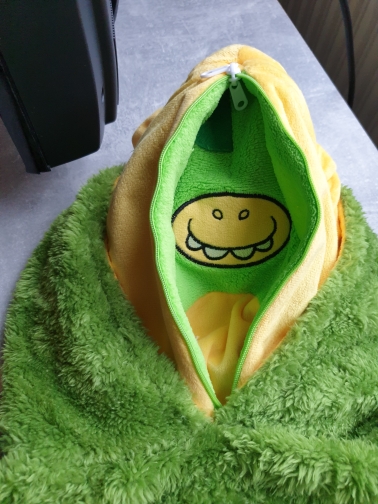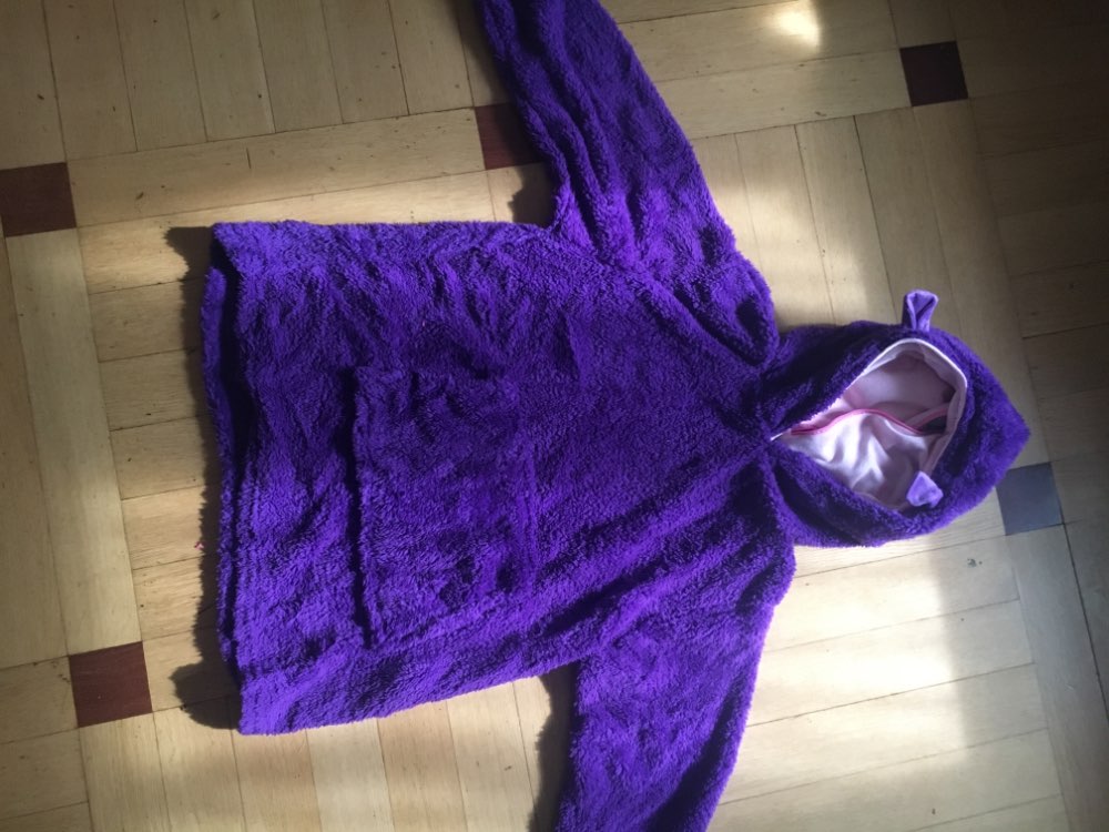 Very funny toy. It is a one-size thing, so the bottom of the hoody is around my 5yo daughter's knees. The quality of hoody's plush is not so good as I have clumps of plush over my flat after less than one day of using.
