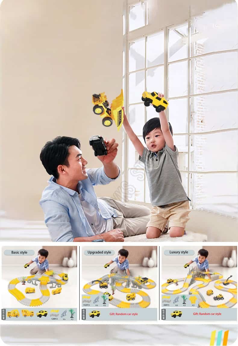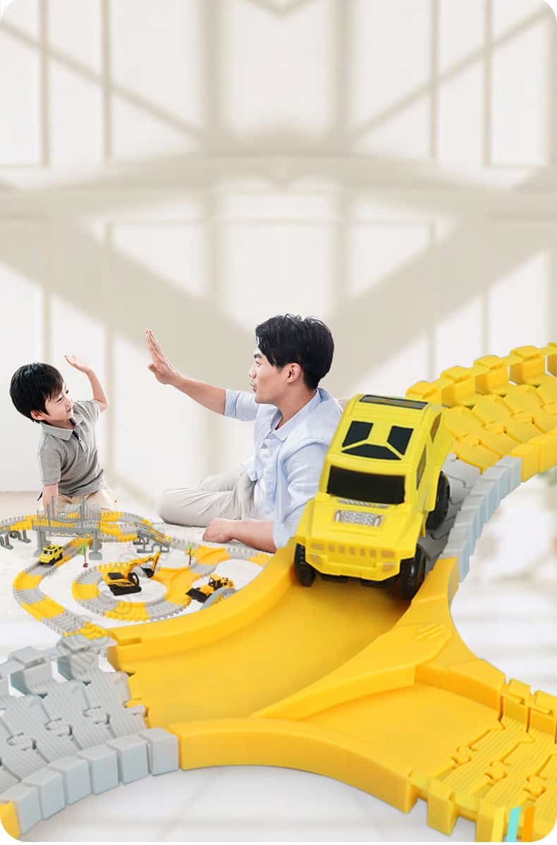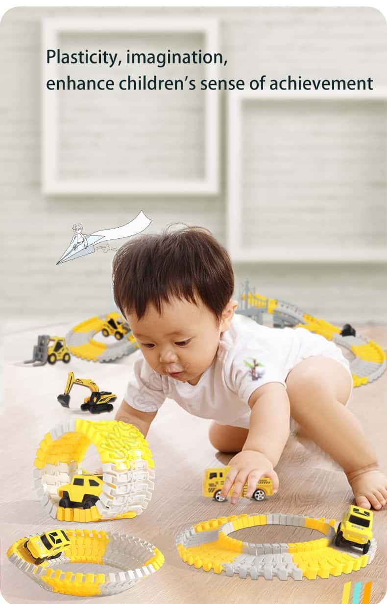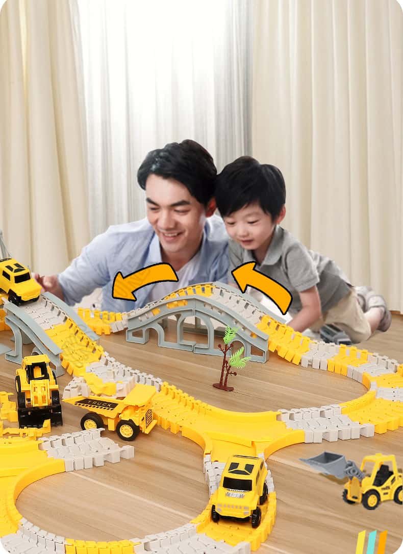 The Construction Track Playset goes beyond building roads. Use the track for racing and the vehicles as perfect sandbox companions toys.