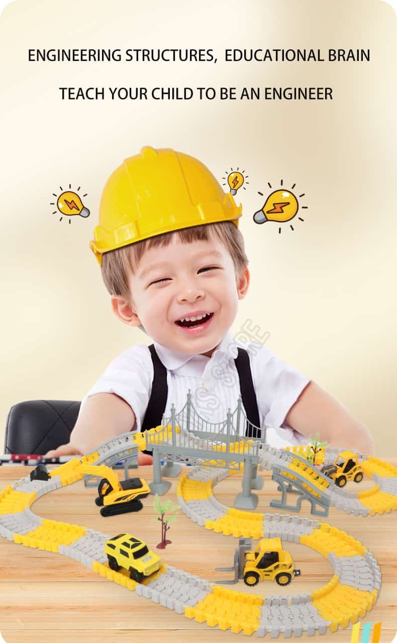 An educational STEM toy, the Construction Track Playset makes for a wonderful birthday and holiday gift for kids aged 3 and up.