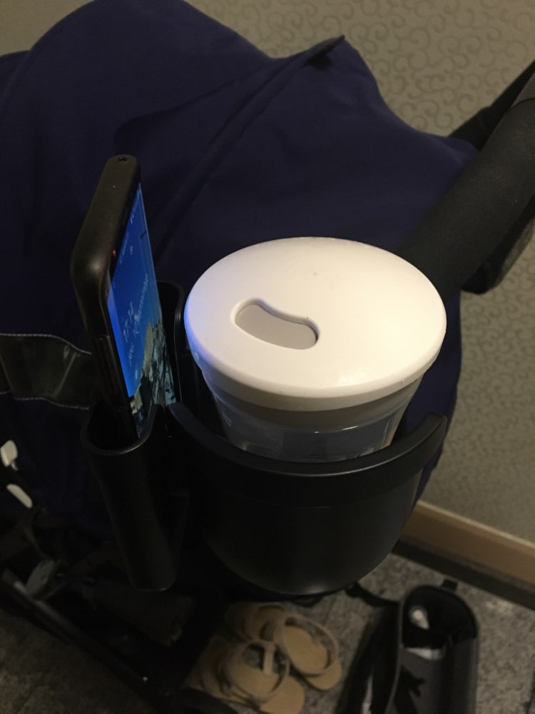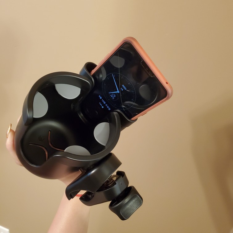 This is a game changer for all the coffee addicts mummies and daddies !!! And of course it works if you drink water too ^^ It’s nice to have your phone close where you can see it easily. It’s very stable and fits any cup or small bottle. I really recommend it, I love it ! Fast shipping, a bit less than 2 weeks to Korea
