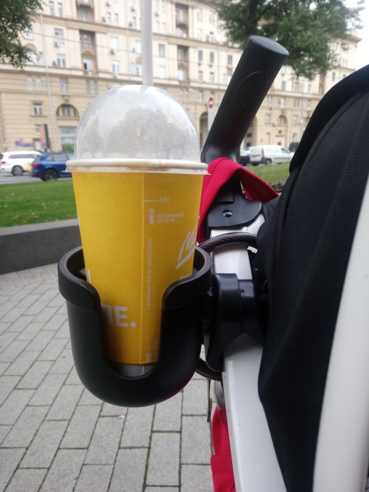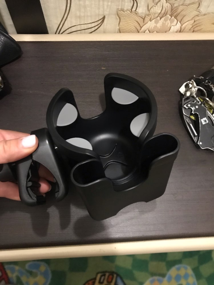 Хороший стакан, из прочного пластика. Не люфтит нигде, внутри силиконовые уплотнители, стакан не скользит, не «бултыхается». Зашел нормально и большой стакан от Старбакс и узкая бутылка водички. Держатель для телефона тоже норм, думала бортики низкие, но нет. Для айфона Х норм. Отправка супер быстрая, 2 недели
