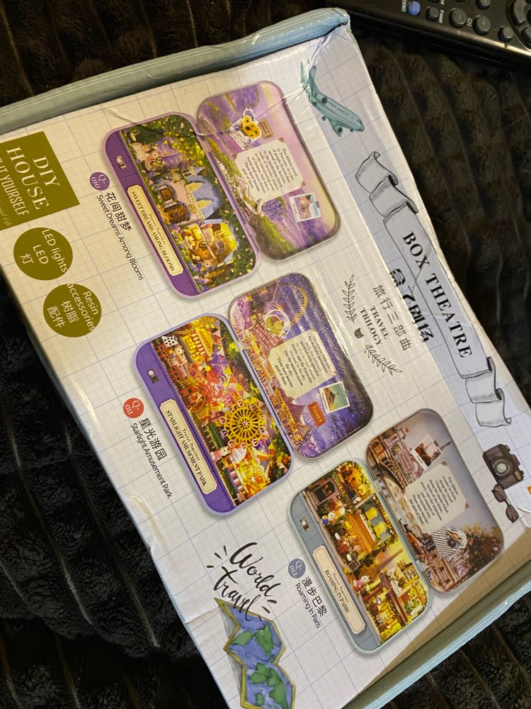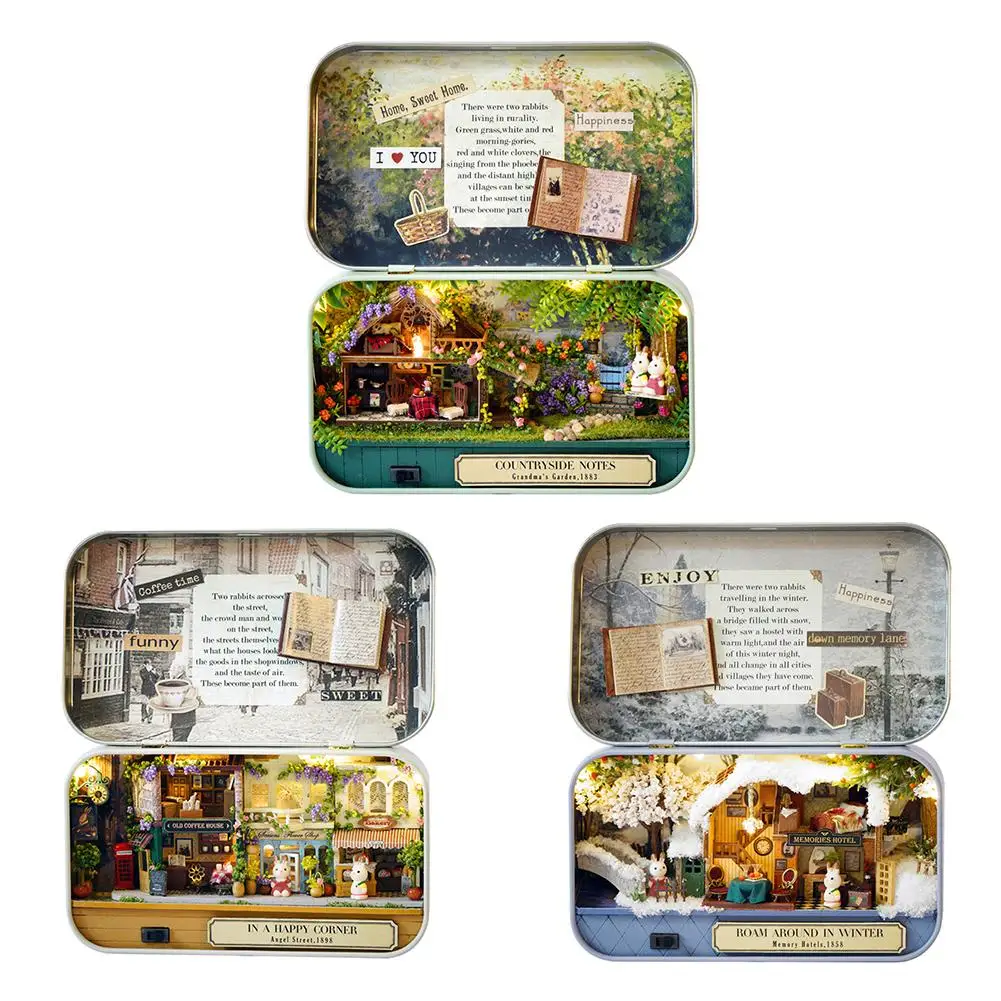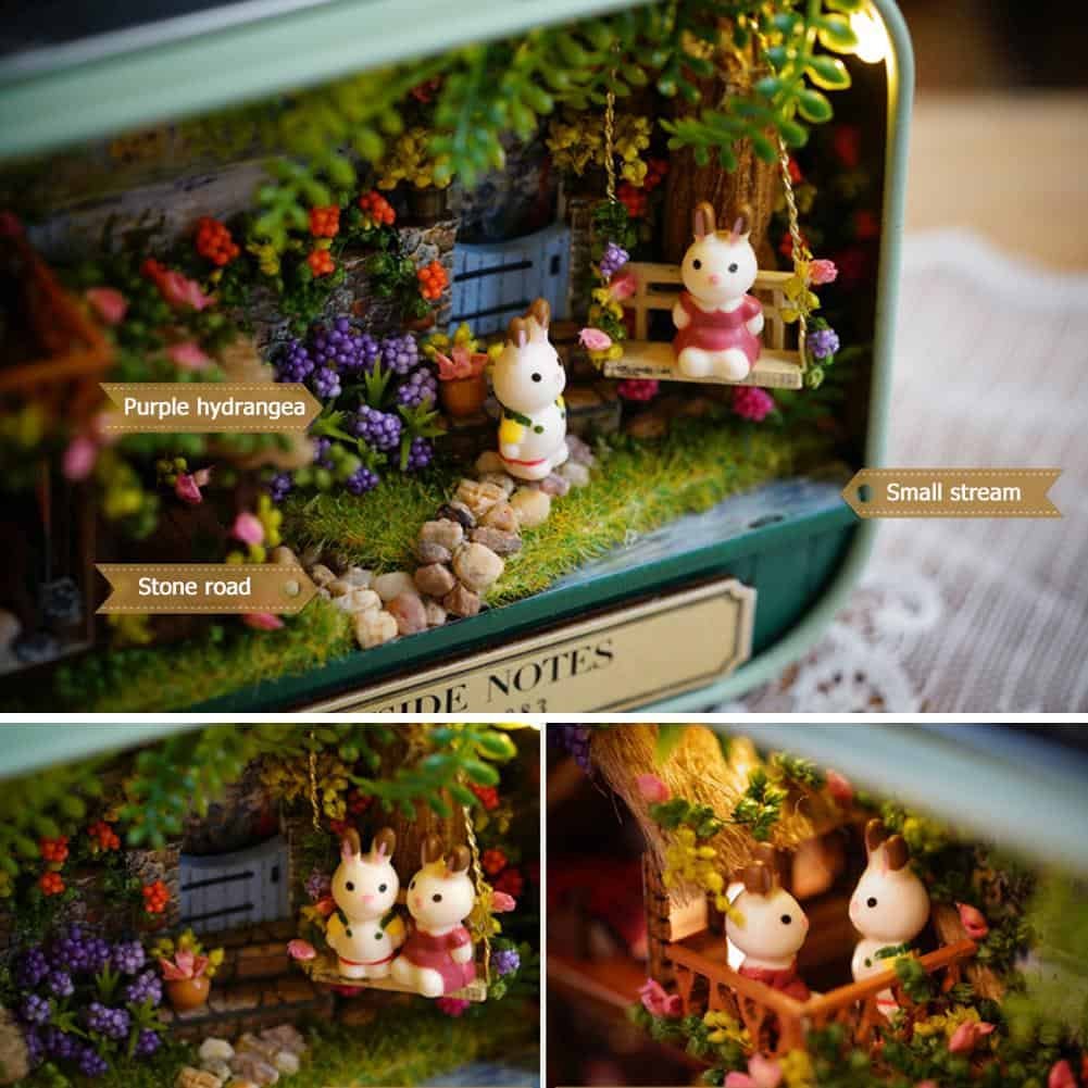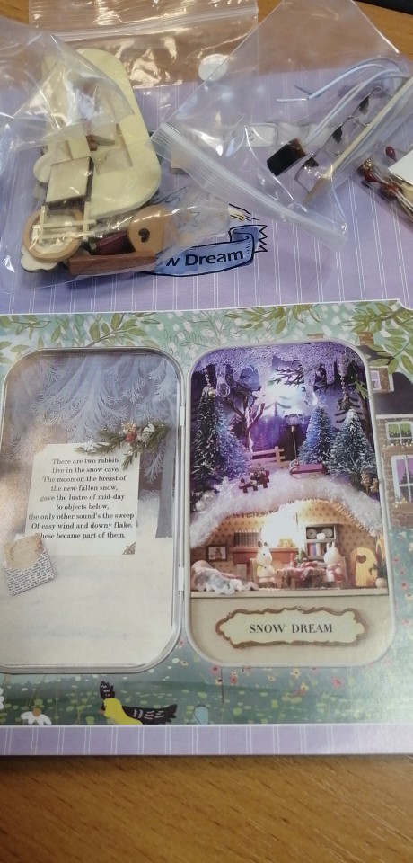 Accessory: tin box, power supply board with switch, a string of lights, a high-brightness LED lamp, a pair of cute rabbits and a display bracket.