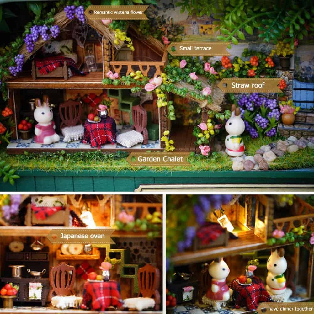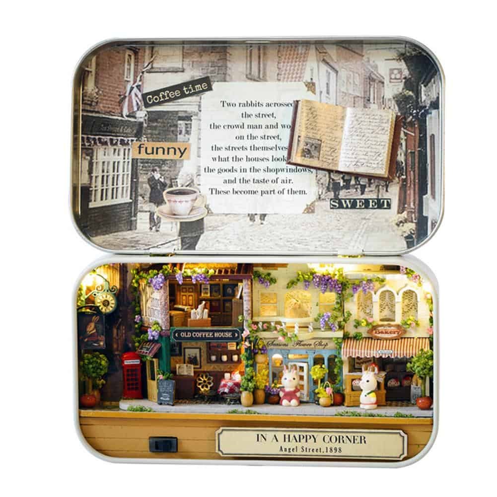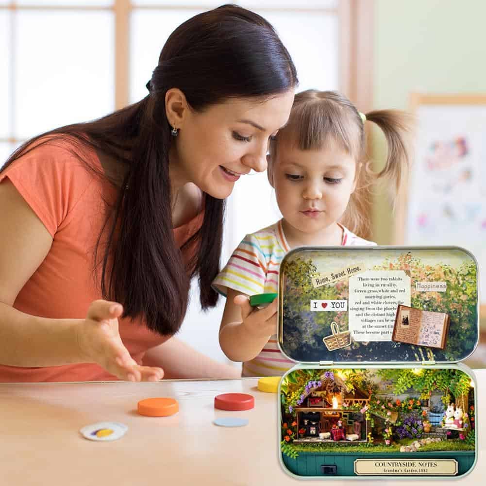 Accurately speaking, the cute house is not designed to be played with, but collectible buildings or home decoration after finished. It come with parts, need to assemble DIY. The assembly is suitable for people older than 14 years, a great way to communicate with teenagers or adults and perfect project for spending time.