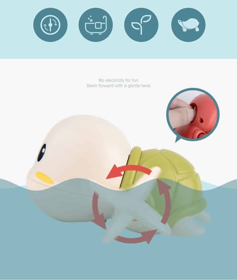 This Cute Swimming Turtle is a comparatively hygienic toy compared with traditional yellow duckies. Drain water from the tortoise’s mouth after each play to prevent bacteria build up.