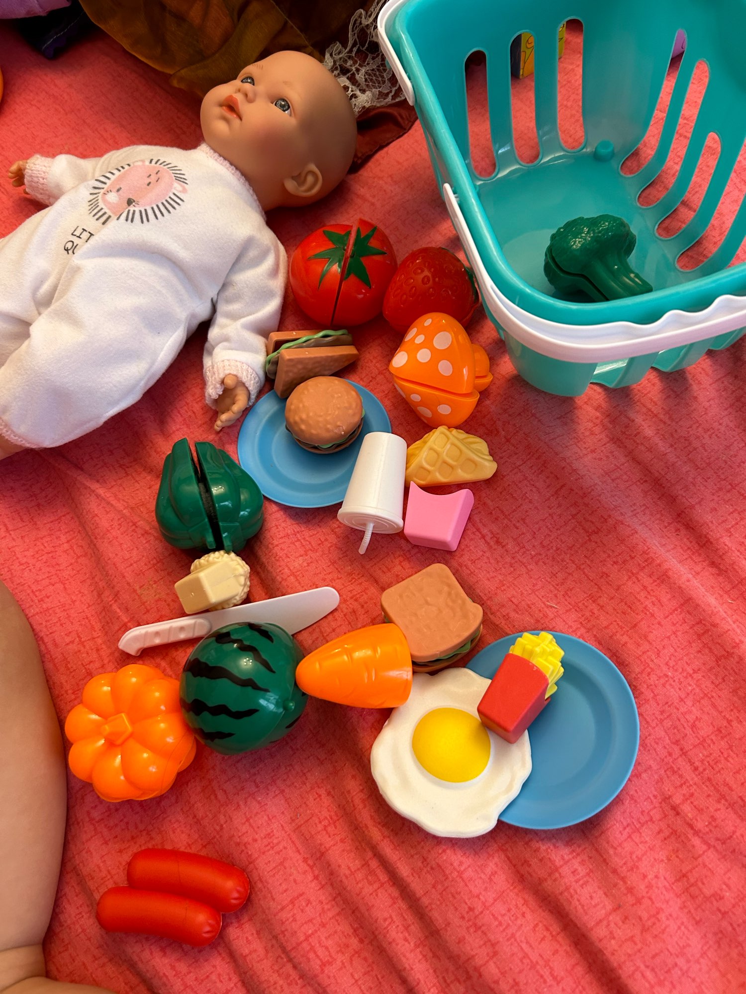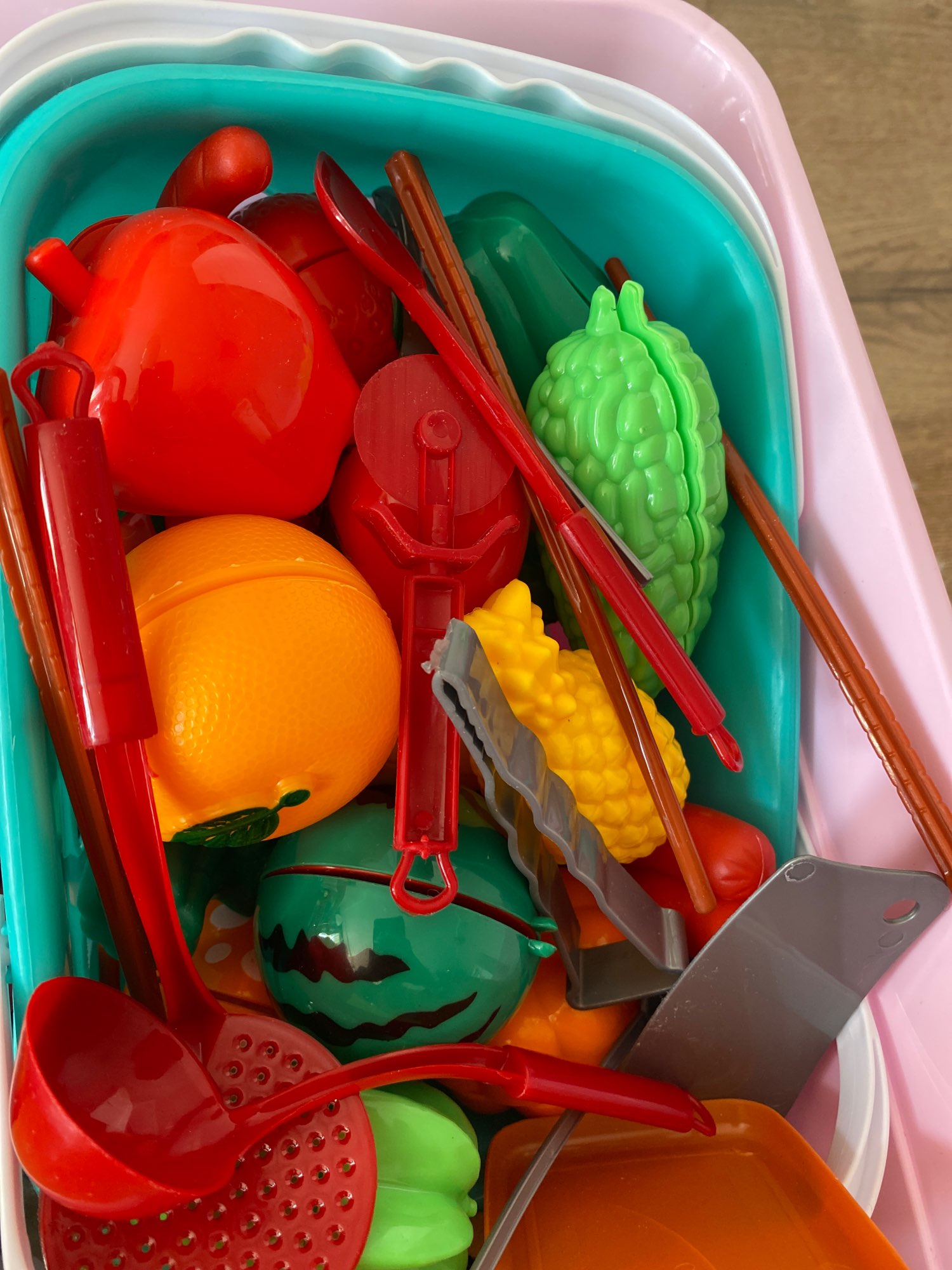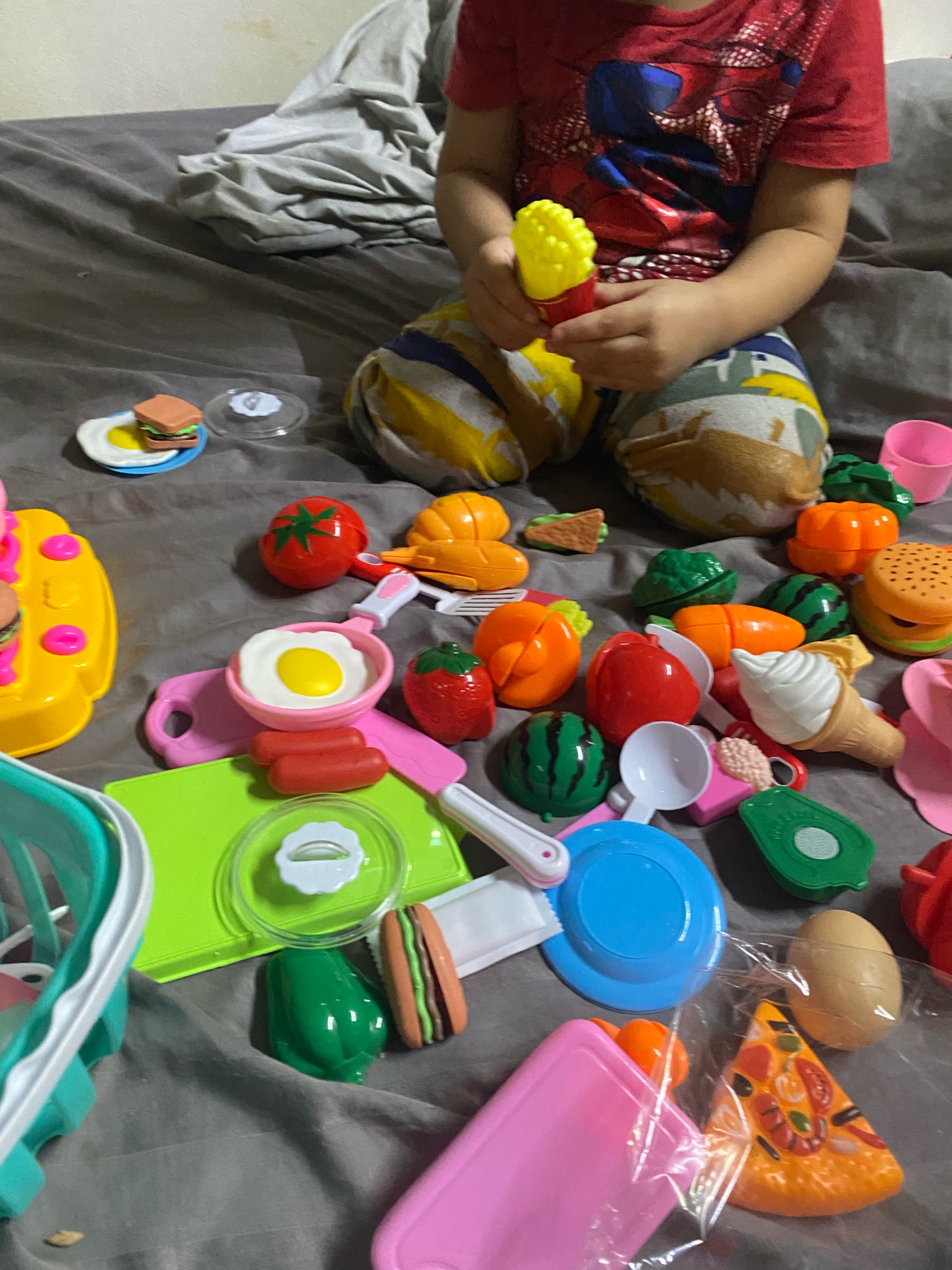 The set is very large and my daughter's eyes immediately fled. But shot a star for the fact that most of the vegetables and fruits are not completely painted, there is not enough chicken and fish that share. The child is generally satisfied, no more is needed. But it's a little offensive that it's not up to the bottom.