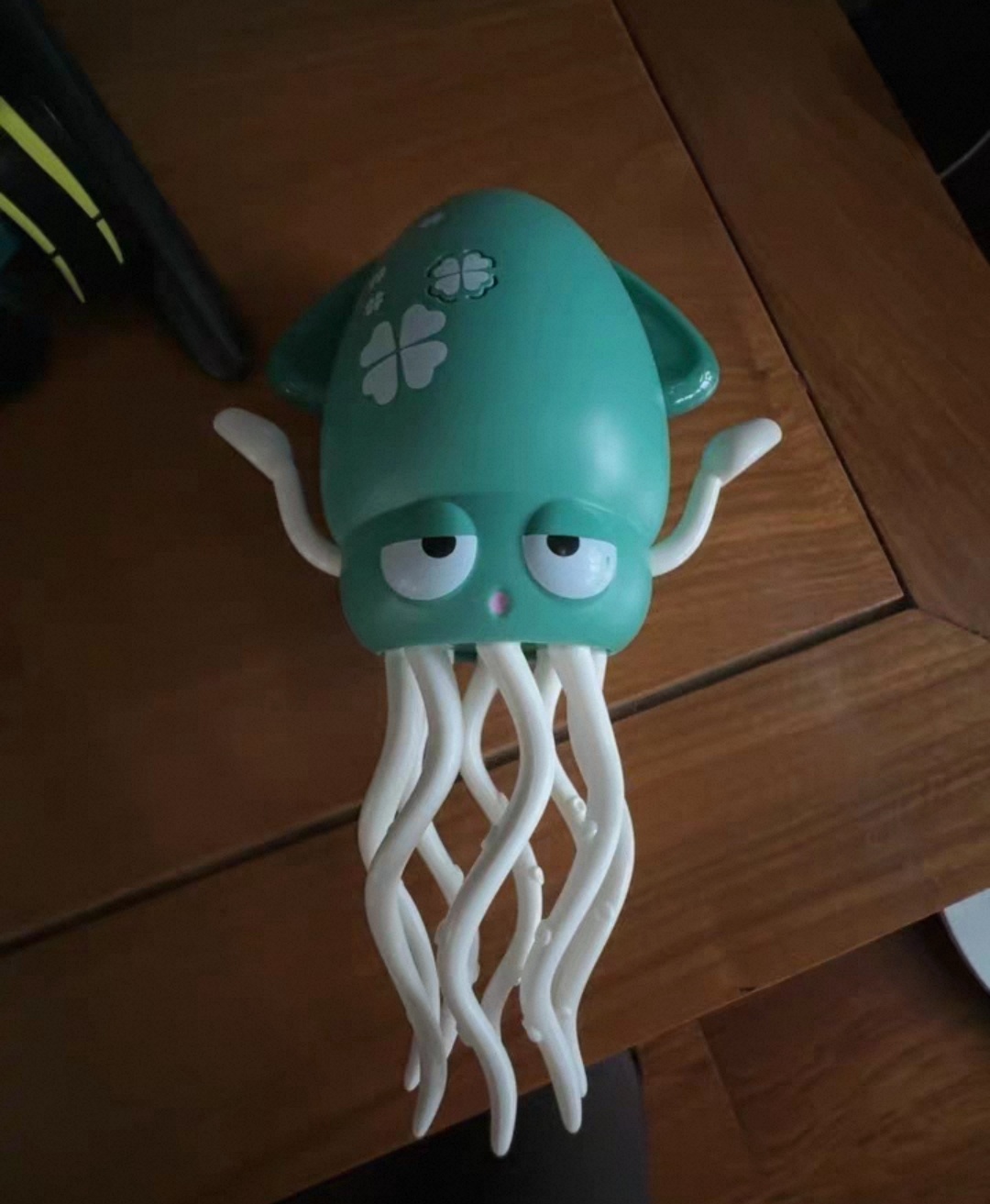 This dancing octopus is one of the coolest toys I've ever seen. It is rechargeable, which is a huge plus. When it lies down and moves on the ground, it has a sensor to avoid all obstacles and starts to go the other direction. It's a genuinely fun and engaging toy that keeps the kids entertained.