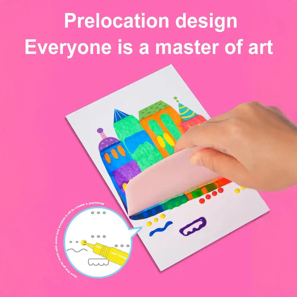 5.Modern Art Experience: Combining craft paints with squeegee art, this color scratch painting set offers a dual experience of experimentation and creativity, guiding children to create beautiful modern art pieces while enjoying the artistic process.