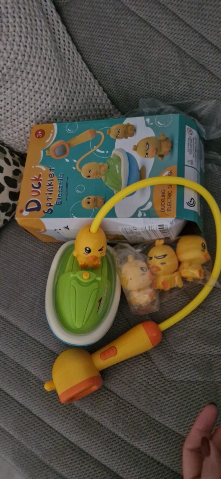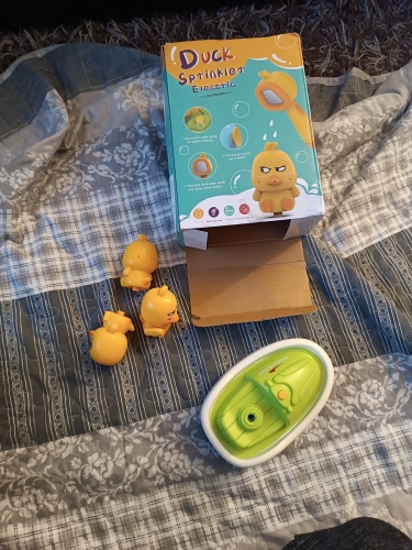 【3 Different Spray Methods】- Tub toy Packaging: boat*1, revolving duck*1, fountain duck*1, drainage duck*1.Turn on the switch of the cartoon boat, put it in the water and it will automatically move forward. Put on the spinning duck, the cute little duck will spin and jump on the boat and spray water; put on the fountain duck, the head of the little duck will instantly turn into a fountain; put the drain duck, the little duck will spray water on every side.