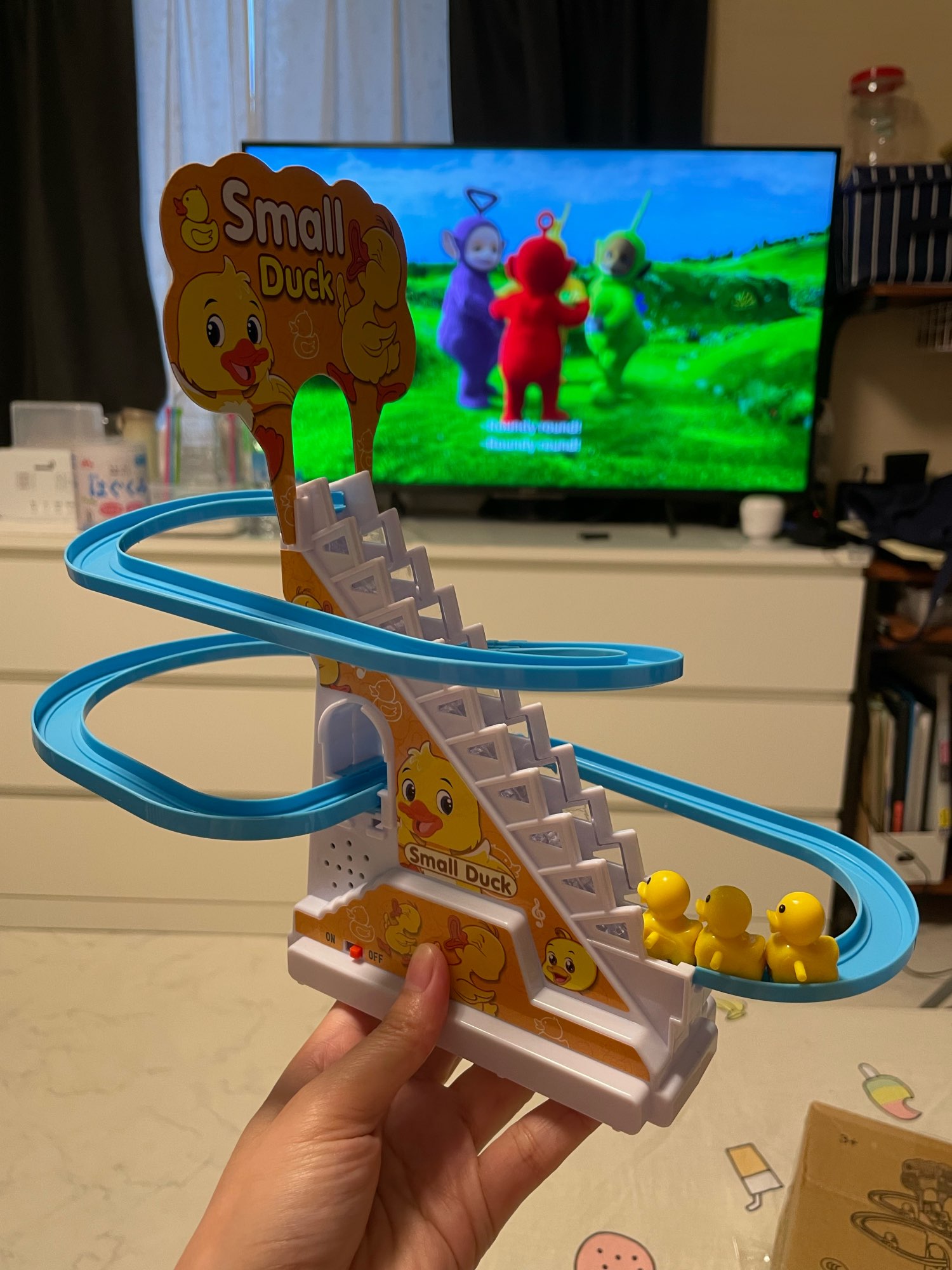 Pretty small, need to be careful to children not took to Buzi ducks, but toy like and are her interest. Stawiam it a short distance, not to sięgnęły rączkom