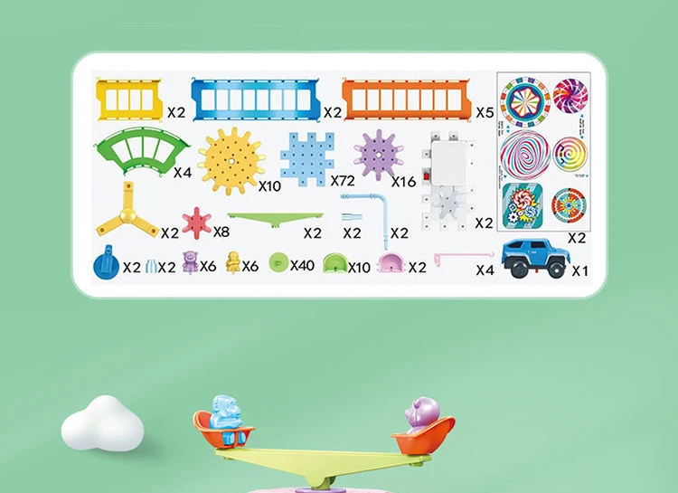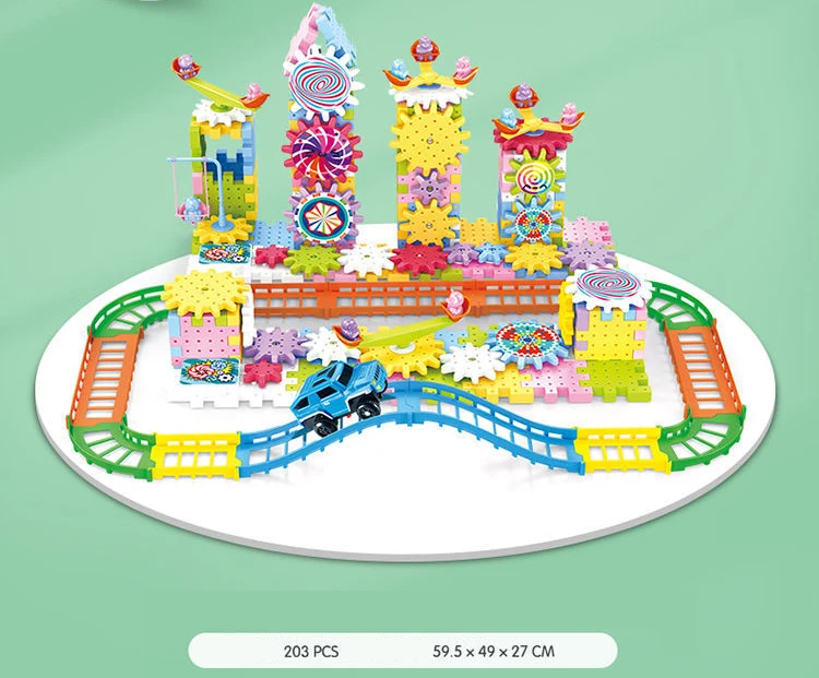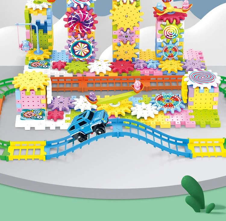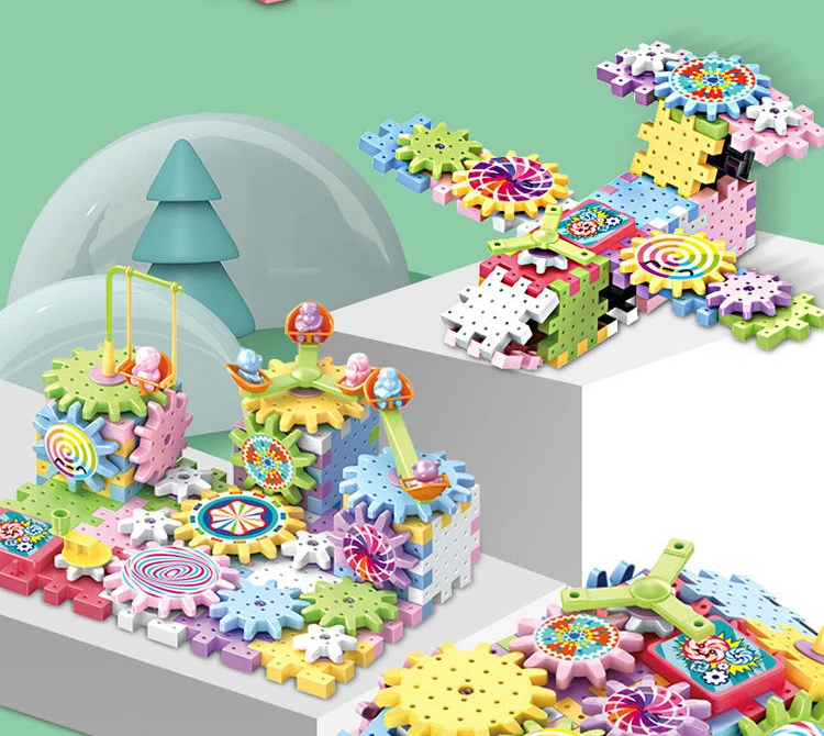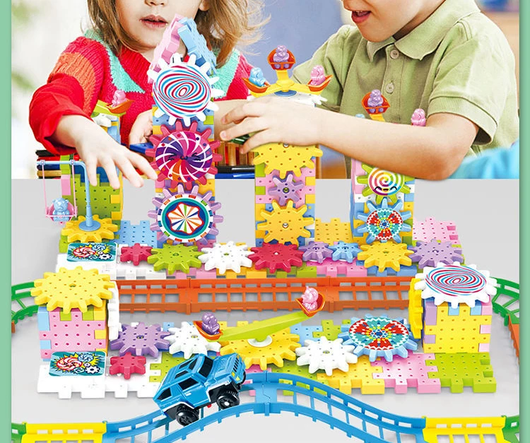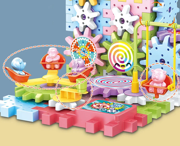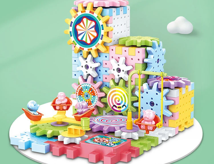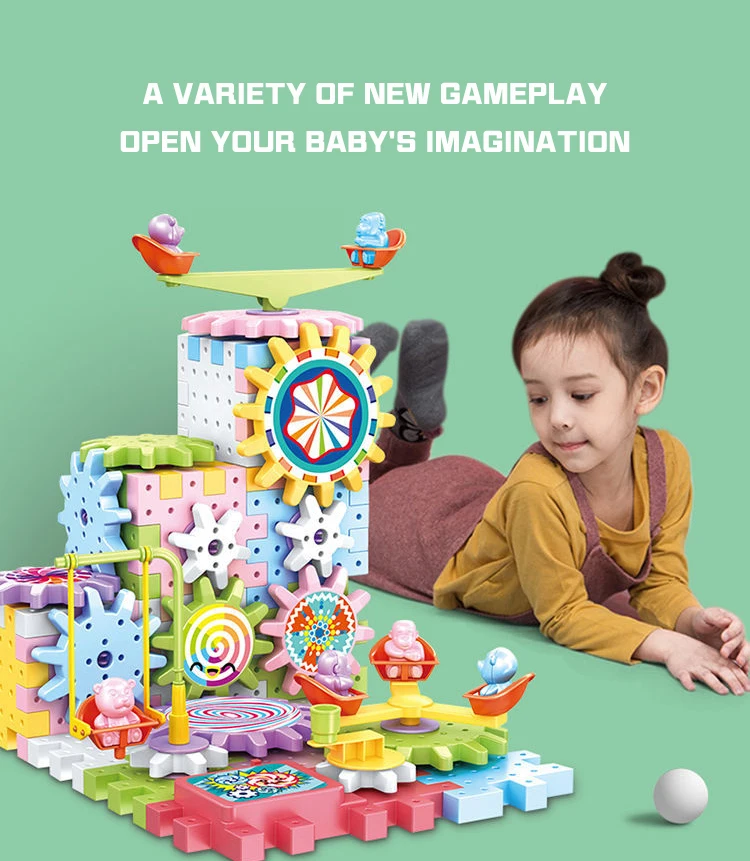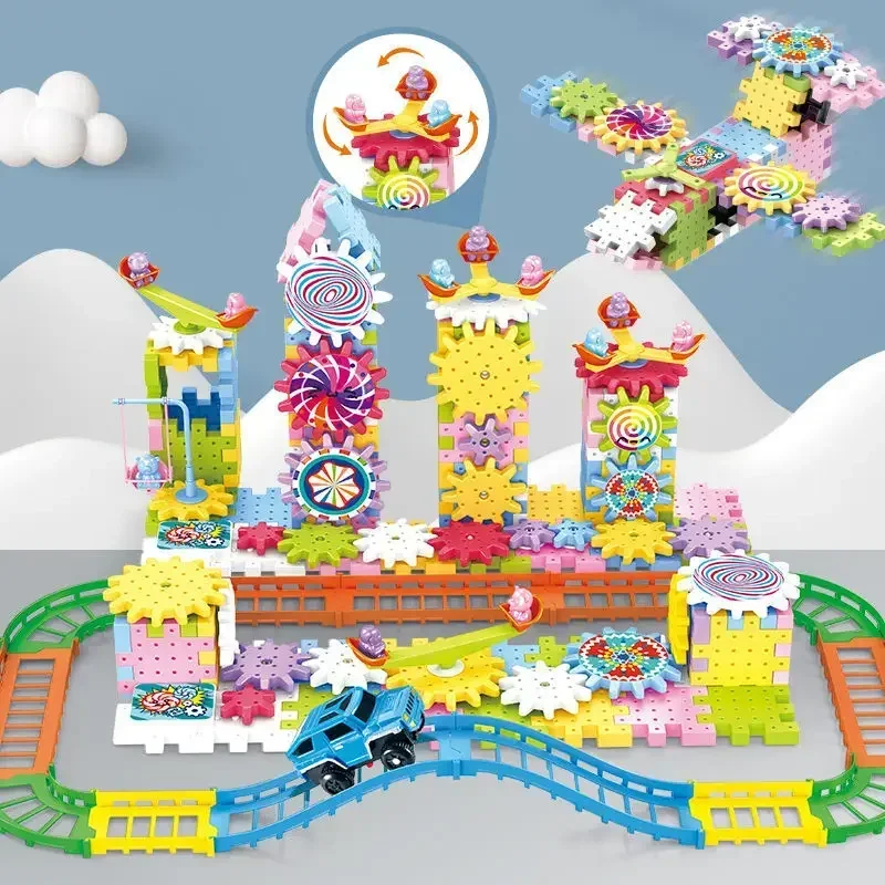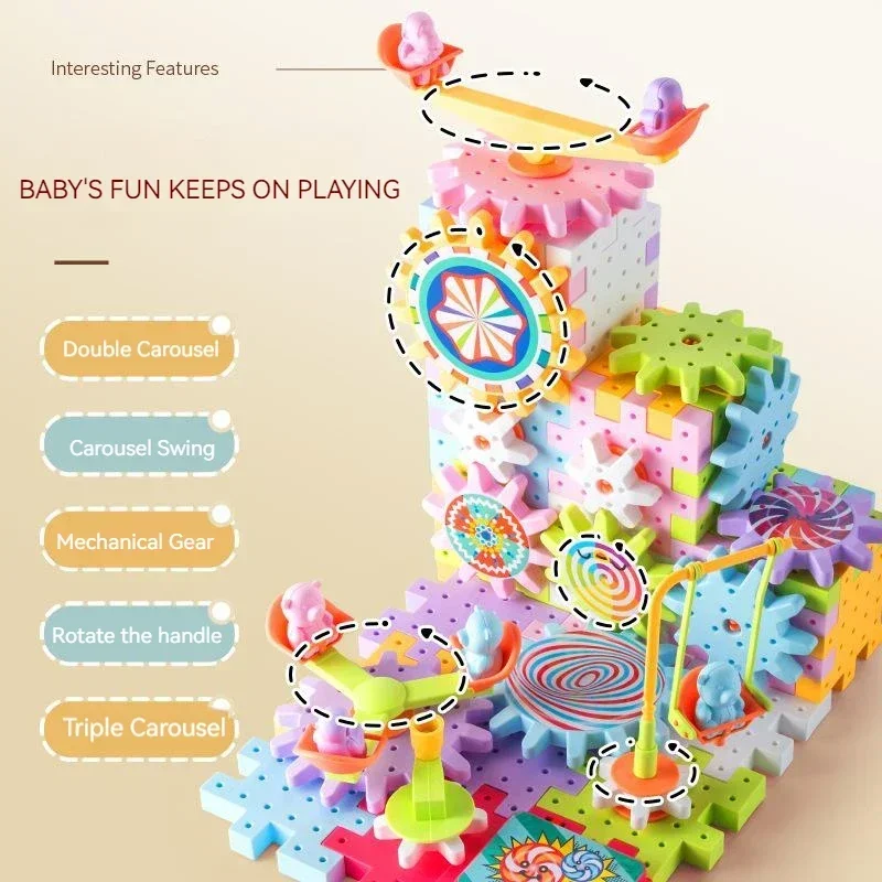 BEST TOY GIFT FOR KIDS: Our Electric Gears Blocks Toy KIT encourages hours of fun, critical thinking and problem solving. Each set comes with interlocking blocks, gears of varying sizes, swing set, see saw, merry go round, figurines and more! A motorized spinning gear inspires creativity, imagination and the learning of engineering skills for children at a young age.
