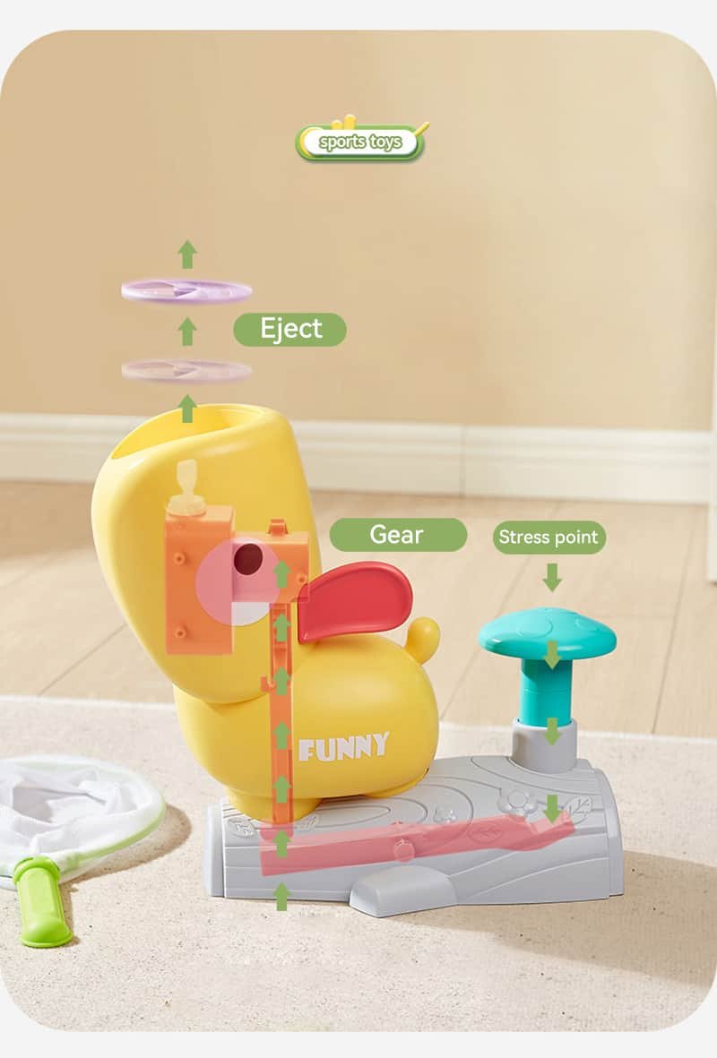 Introducing an exciting and interactive toy that brings endless fun for outdoor playtime: the Flying Discs Launcher! This innovative product is designed to provide exhilarating moments for children and adults alike. The launcher is ingeniously crafted to effortlessly propel flying discs into the air, enabling you to enjoy thrilling games of catch and retrieve.