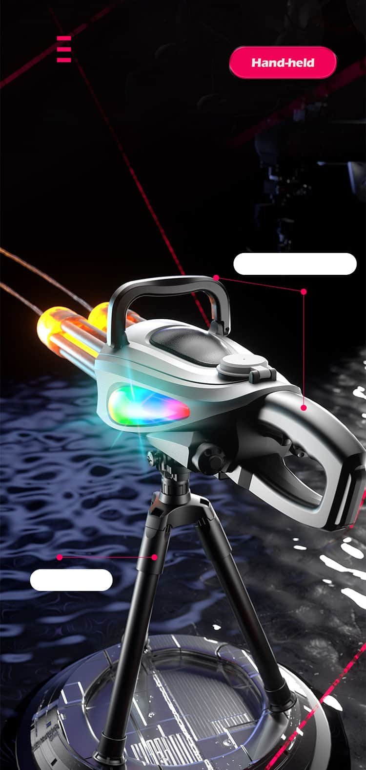 Get ready for the most powerful water gun experience ever! This electric-powered gatling water gun soaks targets with a relentless double-barrel stream, making it the king of any water fight.