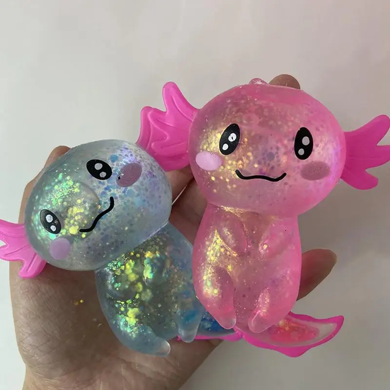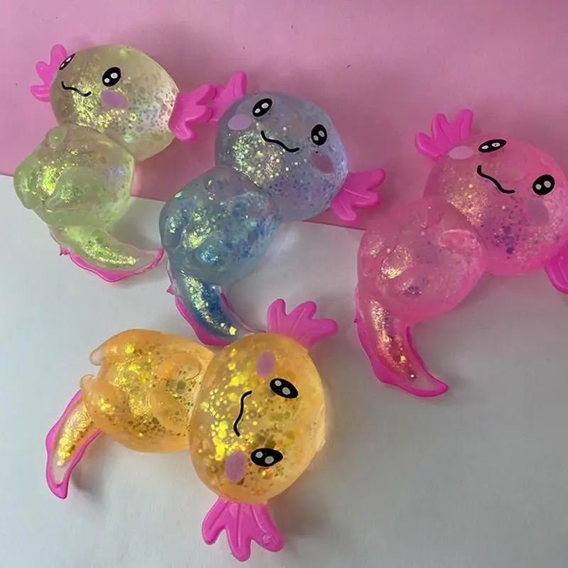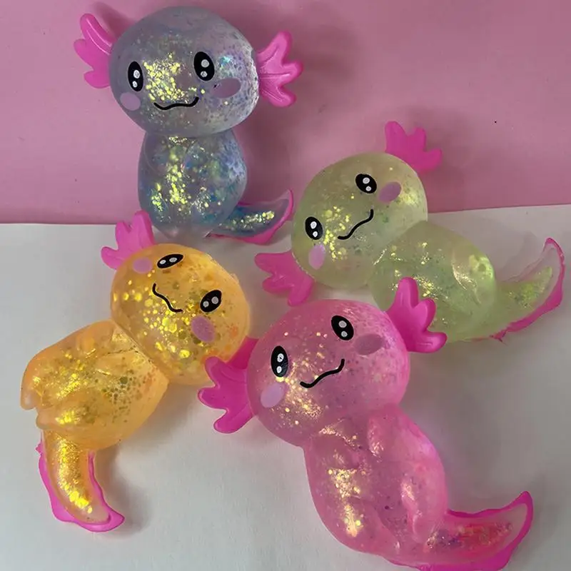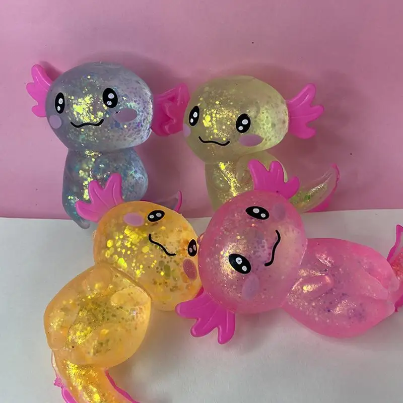 Kids will have hours of fun playing with this sticky Glitter Axolotl Squishy Toy! You’ll just love squeezing them! Made with soft material enhancing the great feeling in your hands. Even better, the bears are awesome for fidgeting and improving hand blood circulation.