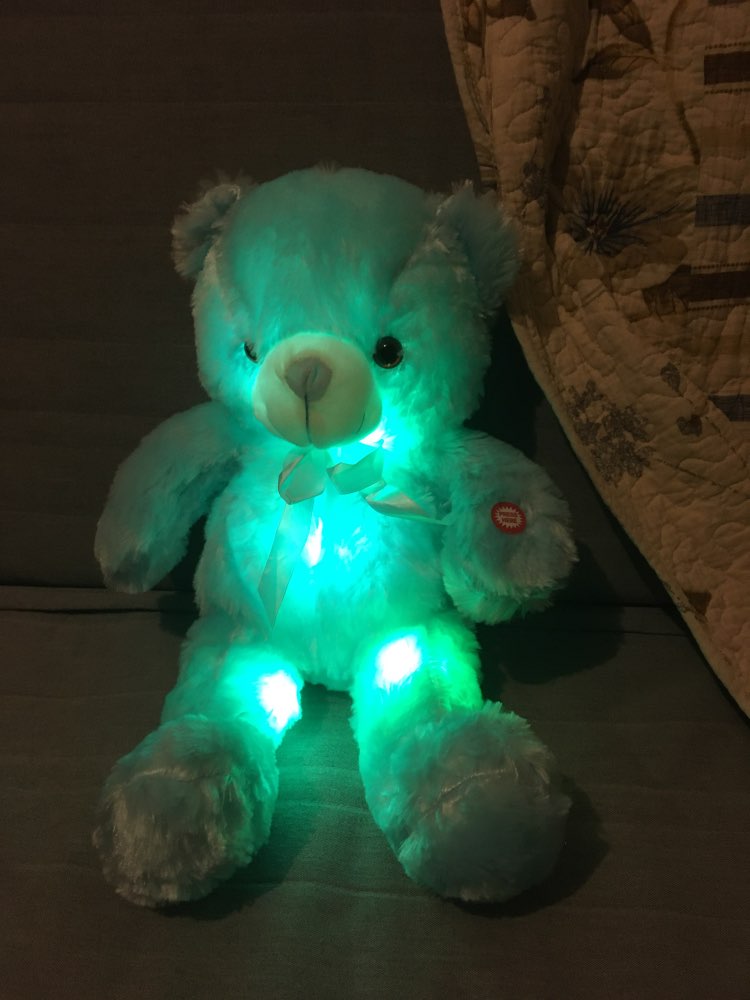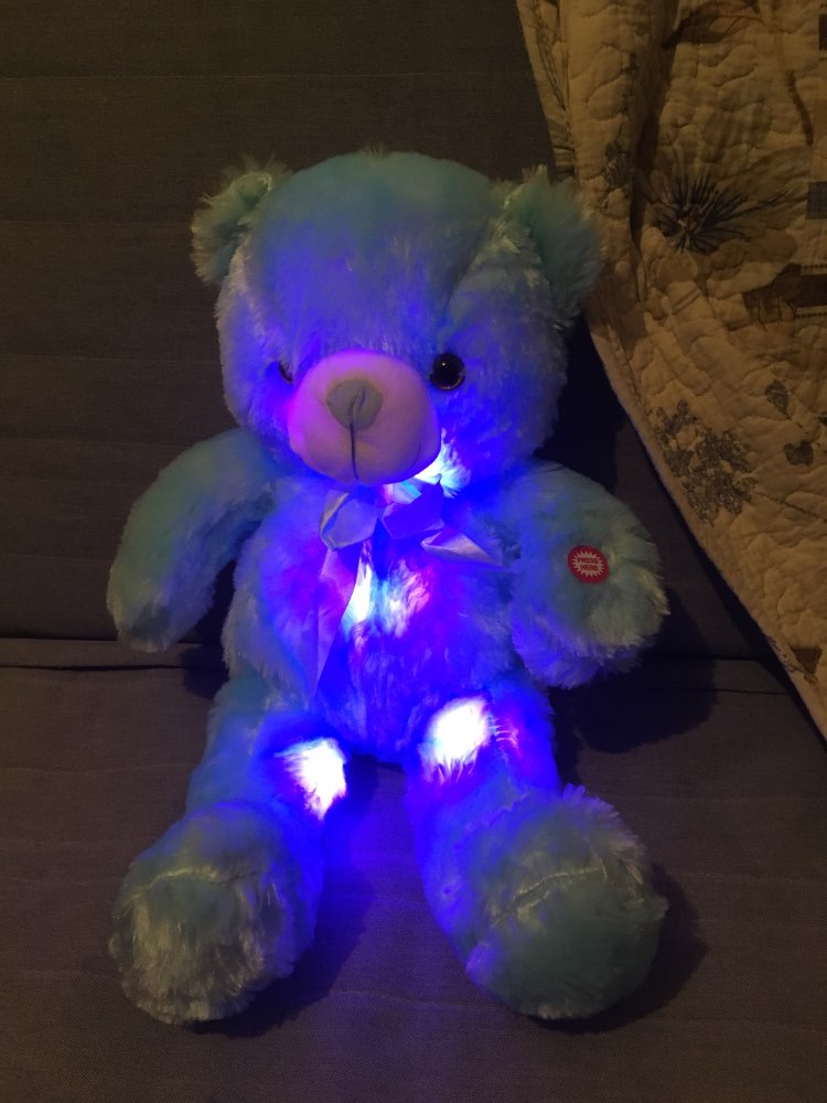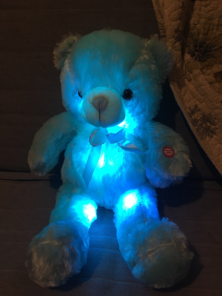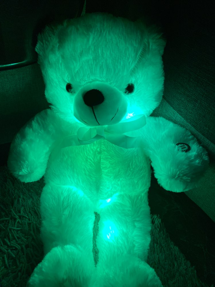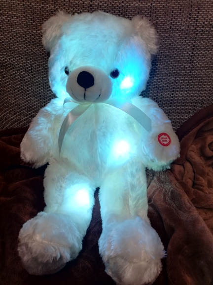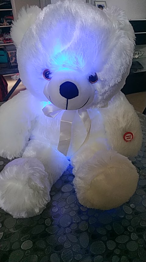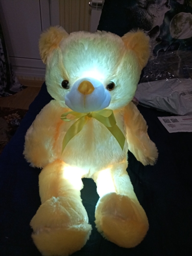 Bear came quickly. Packed well. Big. Very nice. Everything works. Glow entirely. Super!