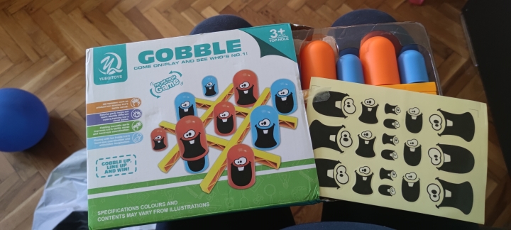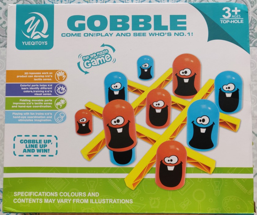 Just line up three of your Gobblers in a row to win. But watch out! These Gobblers are hungry for fun…and other Gobblers.