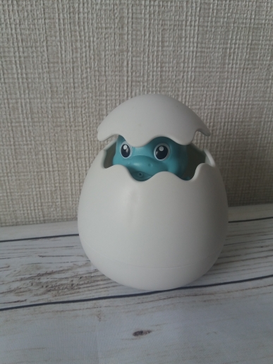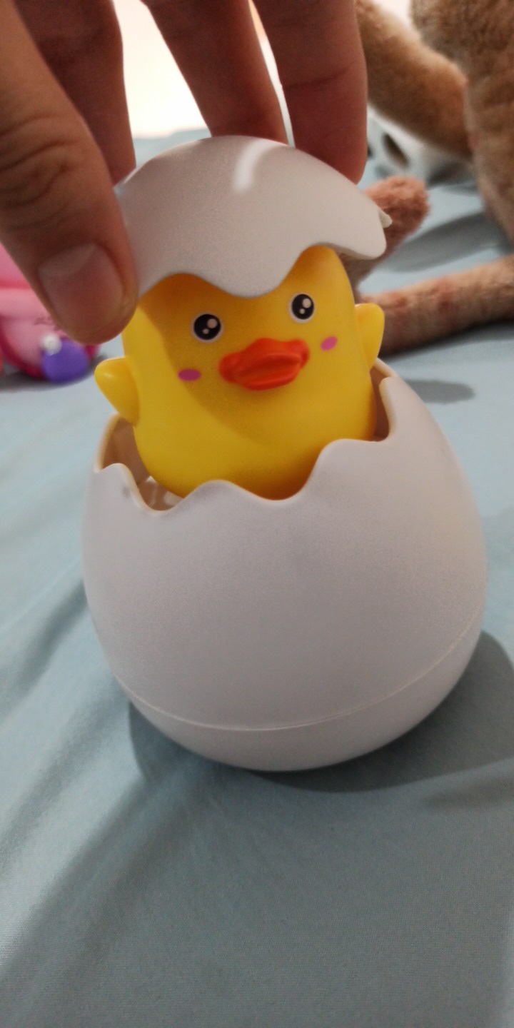The toy came in three weeks, the lid was slightly stuck in the egg, but when I got water, it's all right. In the bathroom, the child liked to play. Recommend