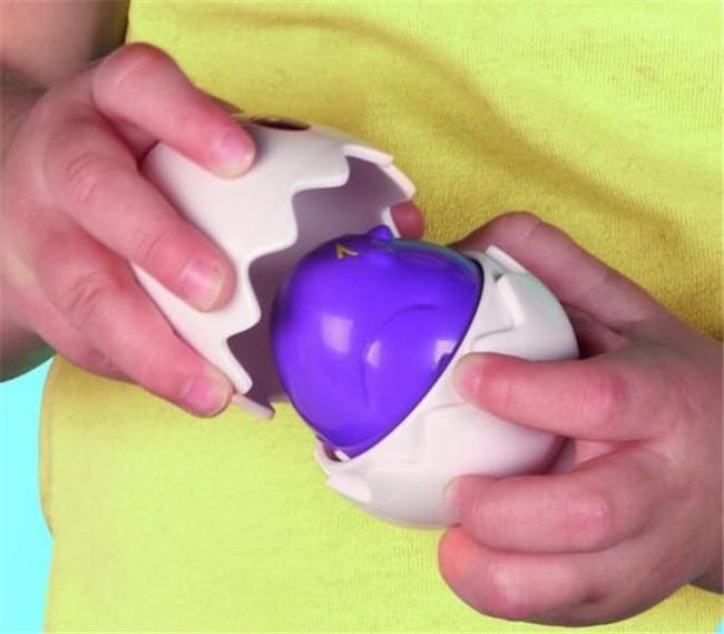 Chirp! Chirp! These are not the ordinary eggs you find at the grocery store! Crack open the shells to reveal six egg-star special chicks. Learn shapes by sorting each shell into its own carton spot. Six different face/shell combinations included. Press down gently on their heads to hear them cheep! Best of all, no batteries are needed. Recommended for ages 6 months and up.