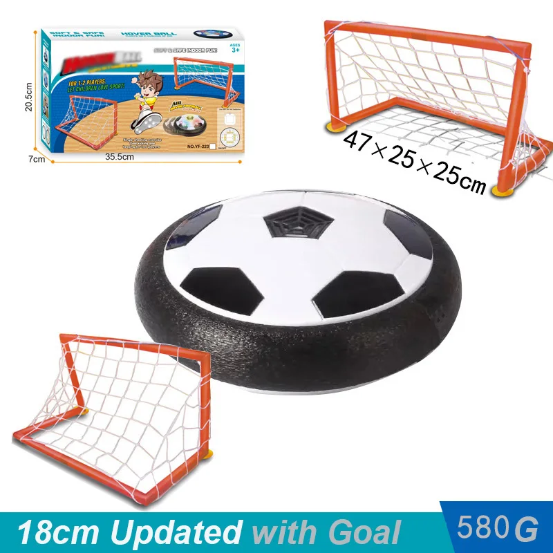 With 2 goals, you can start a fun soccer game with your kids inside the house. The Hover Ball glides across the floors smoothly with lights flashing.