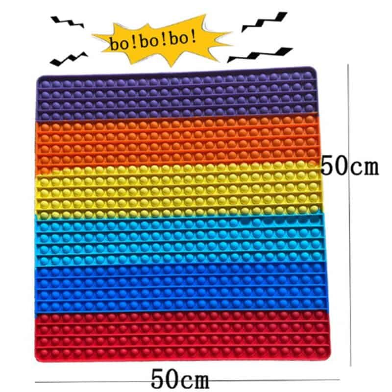 Are you looking for something fun to relieve stress? Let’s try our jumbo pop it, it will help restore the mood. These giant 1000 bubbles fidget toys are great for everyone age 5 to 80. Just press the bubble, it will make a slight popping sound, players take turns pressing down any number of the pop bubbles they wish in a single row. The player who presses down the last one will lose. The pop-up toy can effectively relieve anxiety and stress, helping restore mood, train logical thinking and mental arithmetic ability, prevent brain degeneration and promote parent-child communication. This toy is made of high-quality silica gel, non-toxic, one-piece molding, delicate touch, soft, environmentally friendly. It is washable, durable, and can be reused and cleaned for a long time, if not it can also be used as a cup holder, decoration and dog toy, etc. Don’t miss it! Buy now!